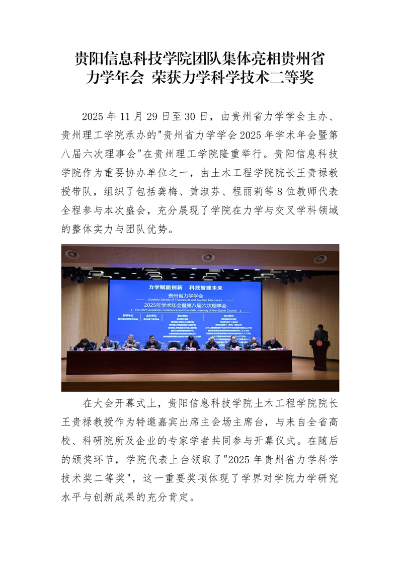 beat365在线唯一官网团队集体亮相贵州省 力学年会 荣获力学科学技术二等奖