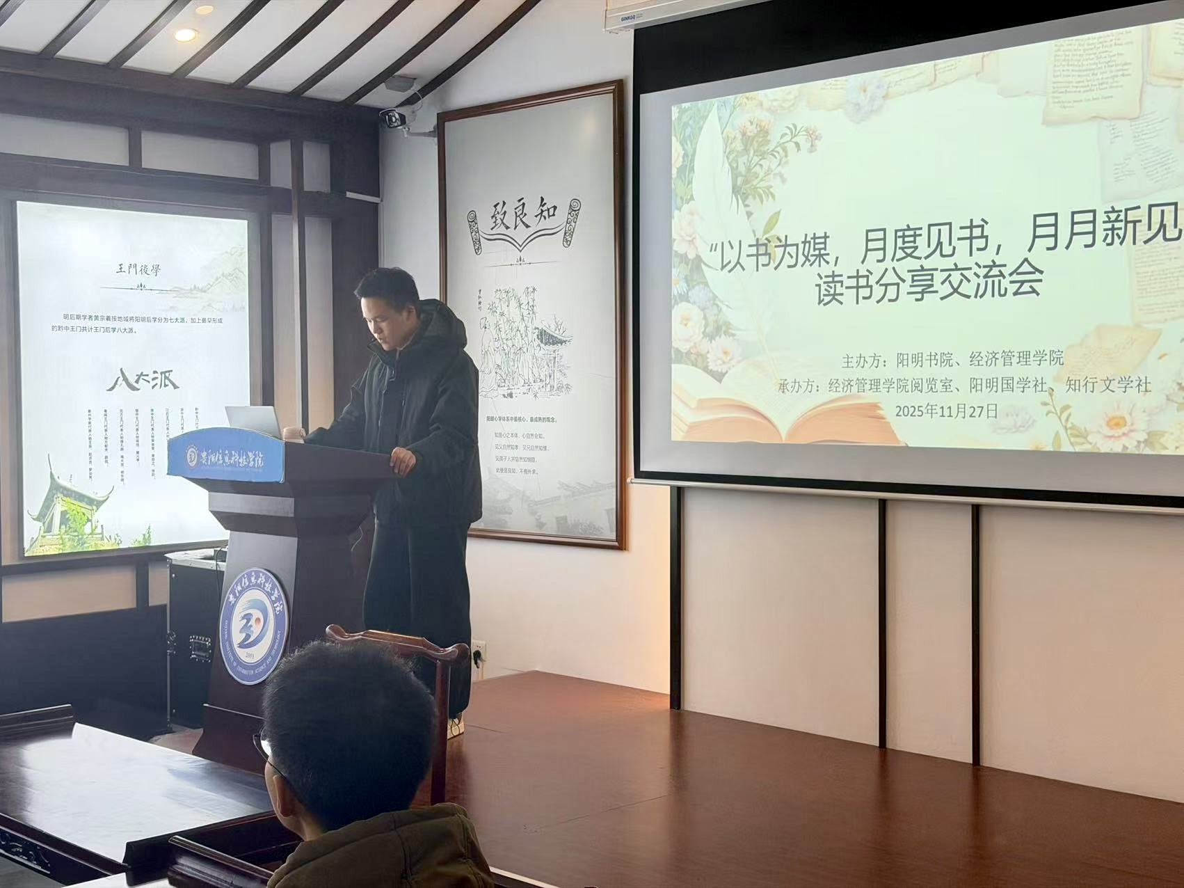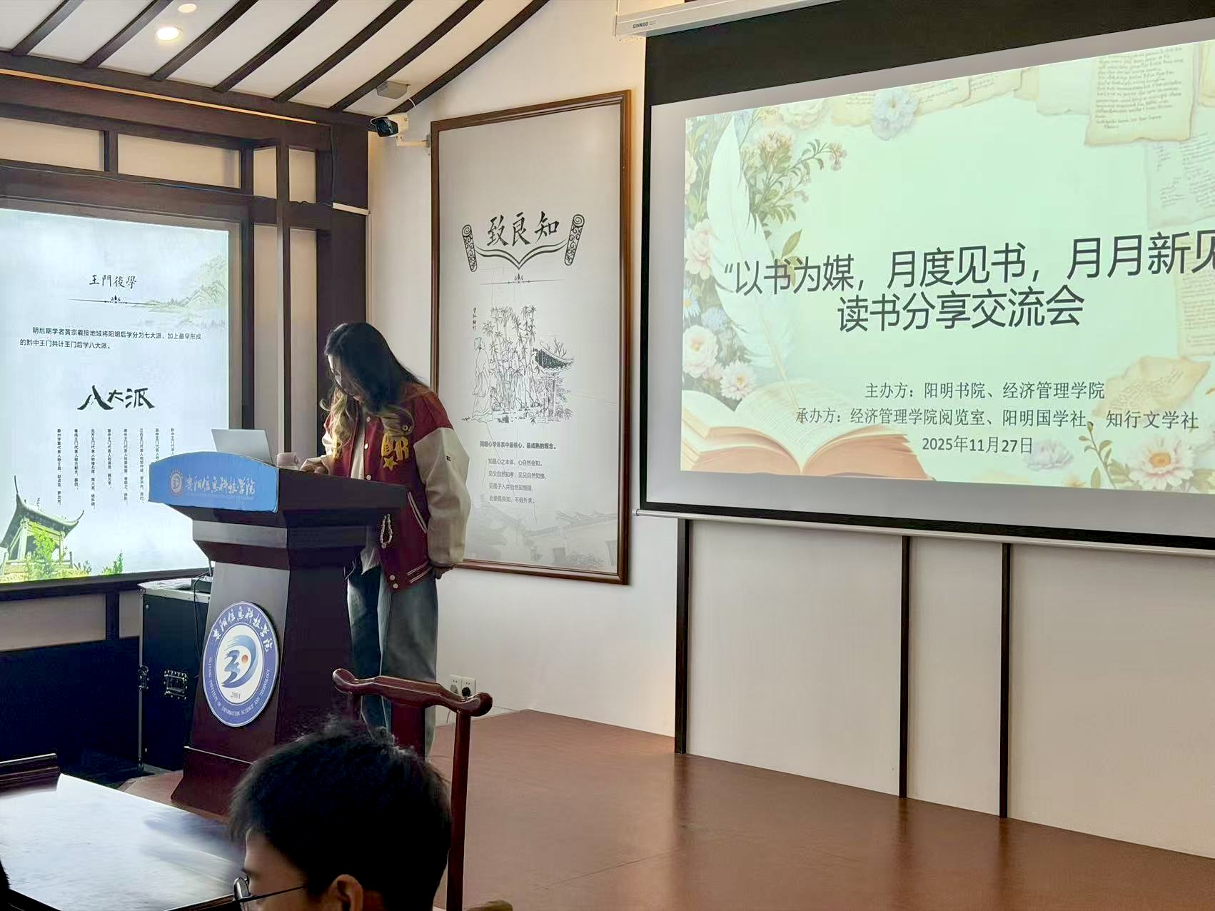 新闻网讯(供稿/供图 余诗雅)书页轻合,余韵悠长。2025年11月27日晚19:00,我院读书分享交流会在阳明书院温馨开展。该活动自报名启动以来,受到广大学子的热烈响应,爱书之人齐聚一堂,在墨香氤氲中展开了一场思想与情感的深度对话。