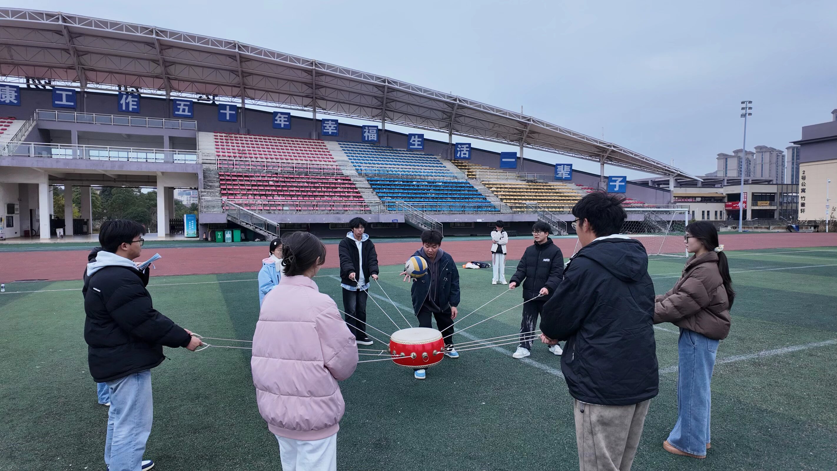 新闻网讯(供稿/供图 财管2501班)2025年12月17日,经济管理学院财管2501班于学校一号足球场举办了“心理团辅暖人心 凝心聚力迎期末”心理健康团辅活动。在期末备考的关键阶段,班级同学普遍面临较大学习压力,为深入贯彻落实立德树人根本任务,切实加强学生心理健康教育,有效缓解同学们的备考压力,进一步增强班级凝聚力,增进同学间交流互动,营造团结友爱的良好氛围,经研究决定,组织开展本次趣味互动活动。