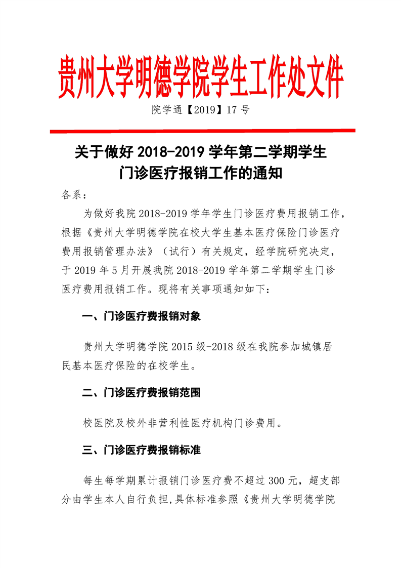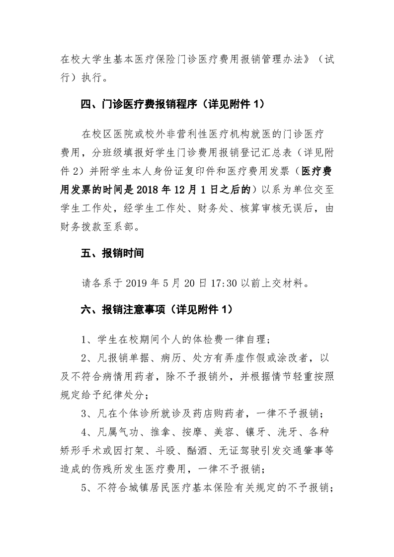 关于做好2018-2019学年第二学期学生 门诊医疗报销工作的通知