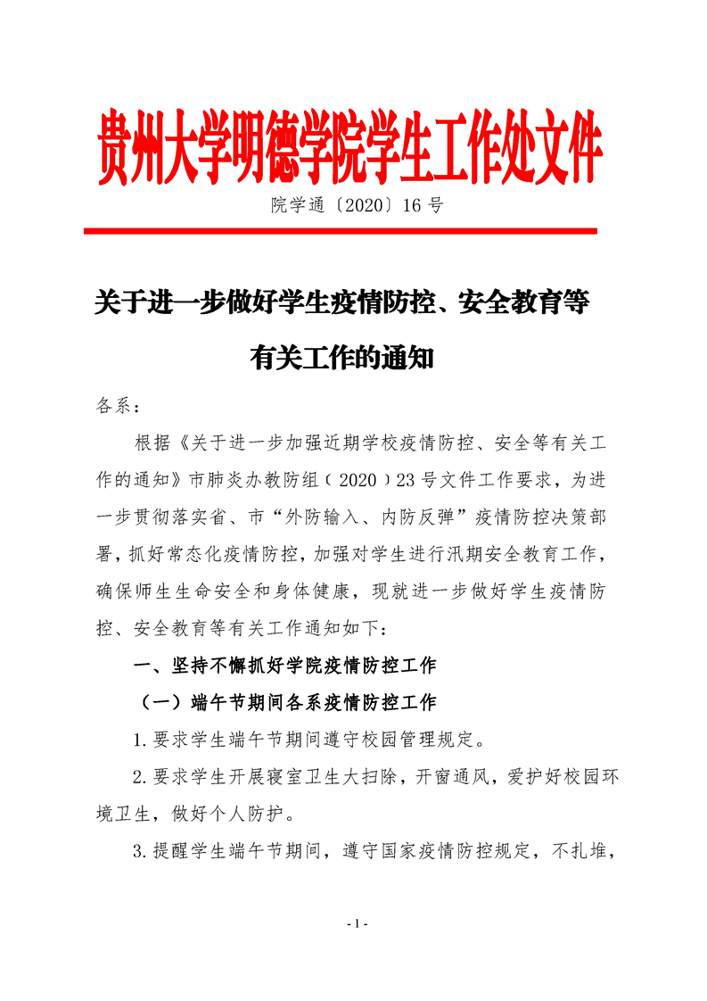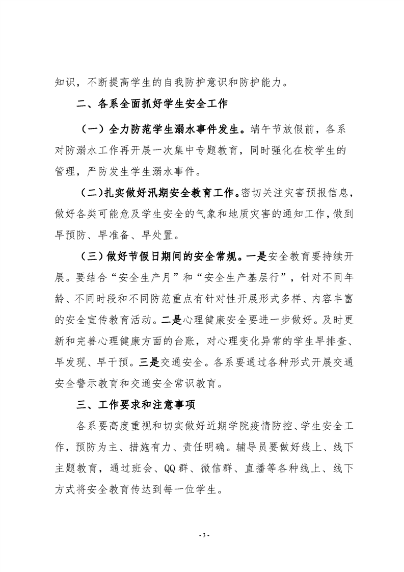 关于进一步做好学生疫情防控、安全教育等有关工作的通知