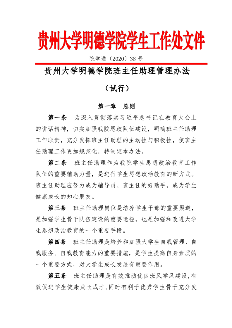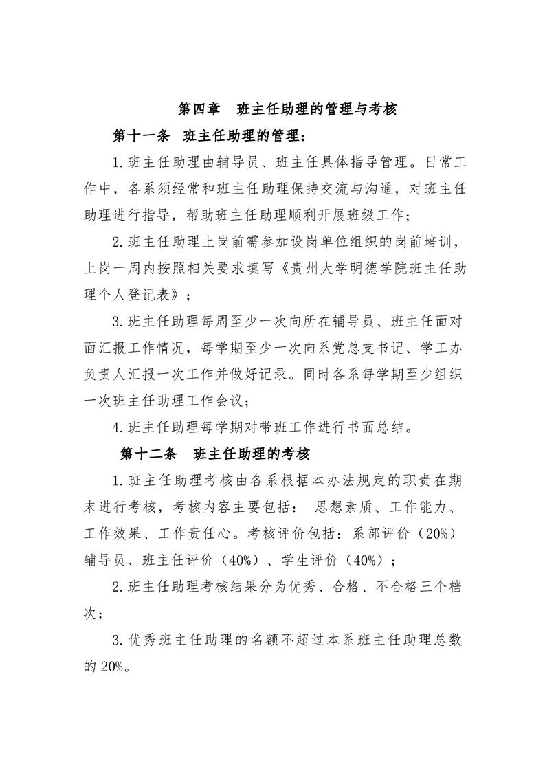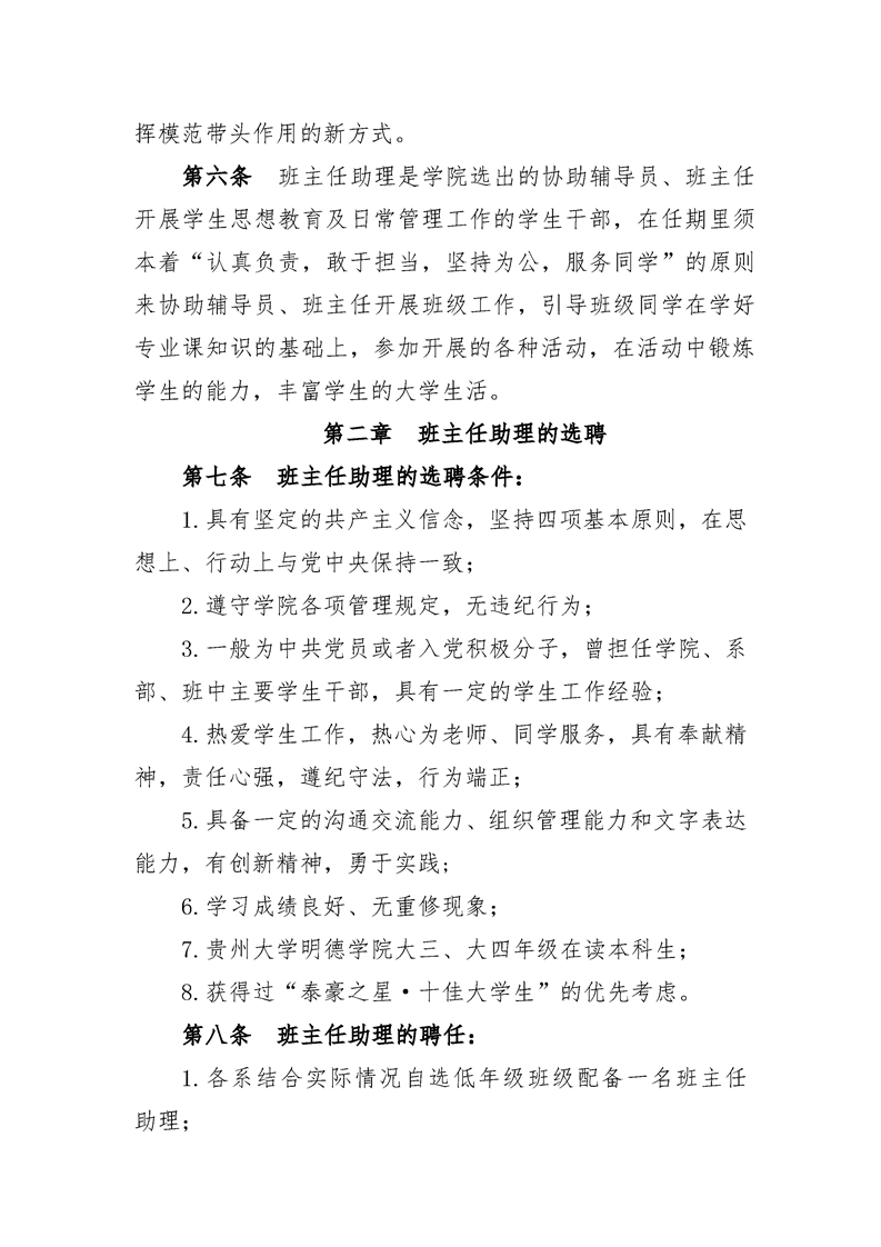 贵州大学明德学院助理班主任管理办法(试行)