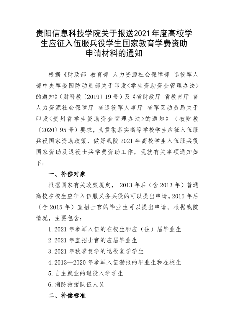 beat365在线唯一官网关于报送2021年度高校学生应征入伍服兵役学生国家教育学费资助申请材料的通知