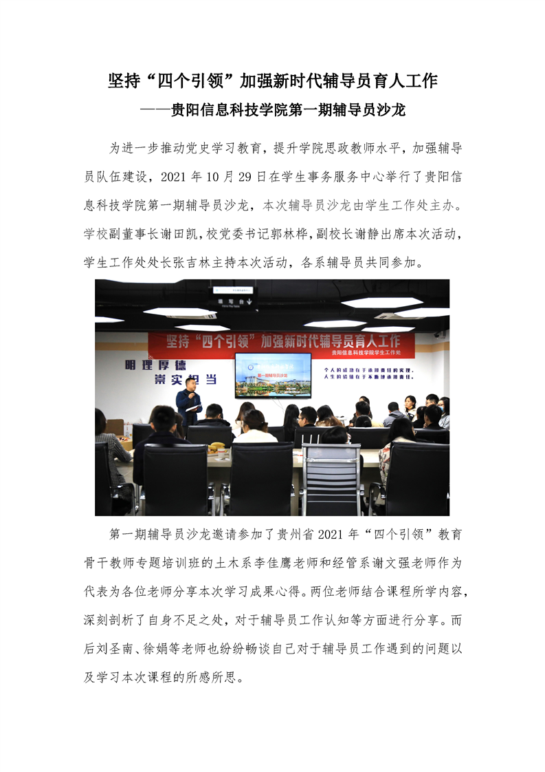 坚持“四个引领”加强新时代辅导员育人工作--beat365在线唯一官网第一期辅导员沙龙