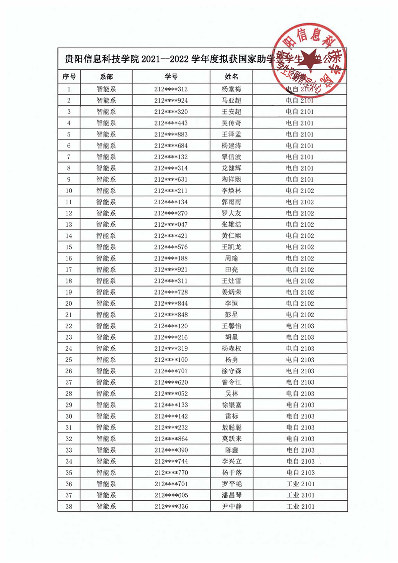 beat365在线唯一官网关于2021-2022学年度拟获国家助学金学生名单公示