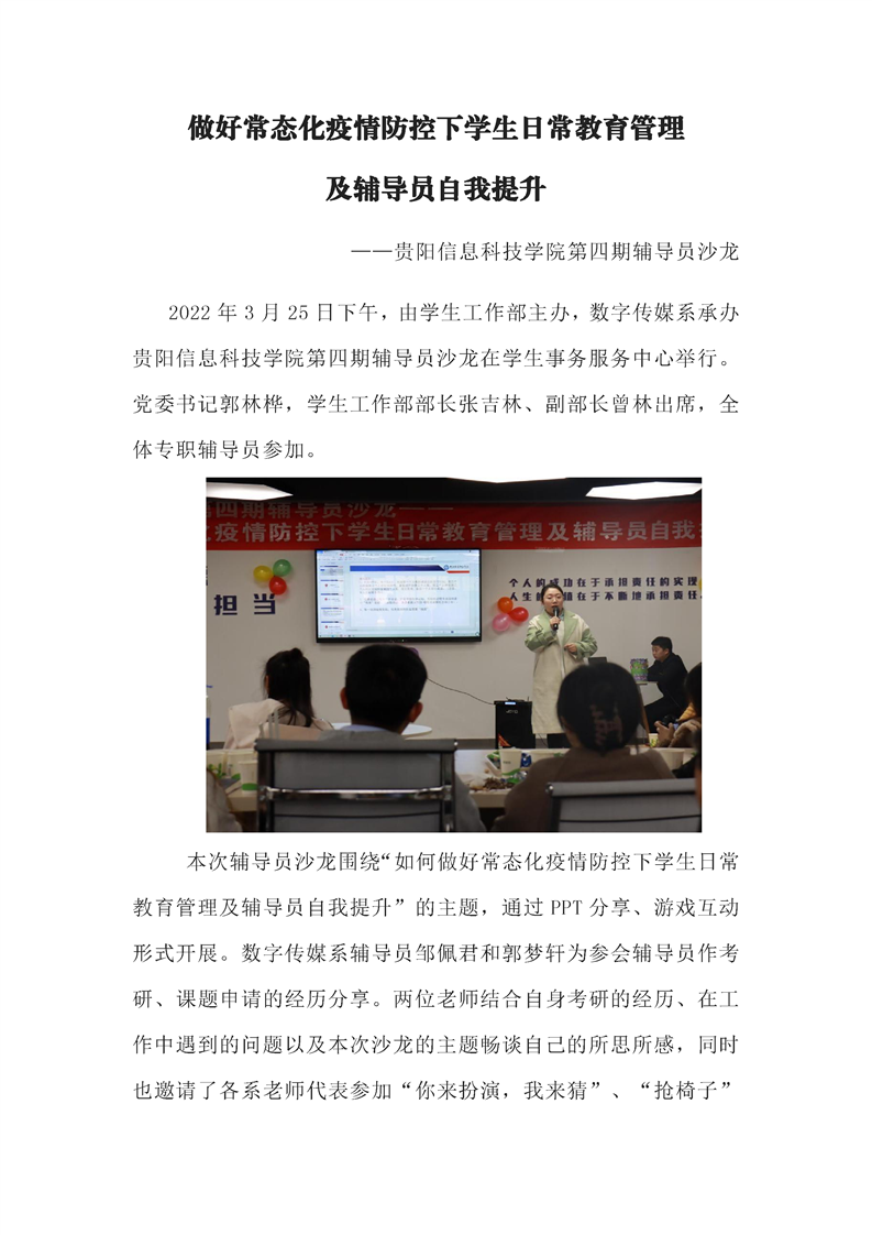 做好常态化疫情防控下学生日常教育管理 及辅导员自我提升——beat365在线唯一官网第四期辅导员沙龙