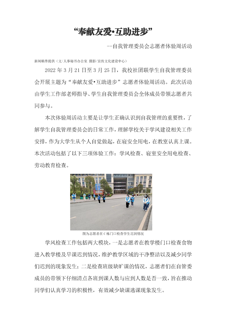 “奉献友爱•互助进步” --自我管理委员会志愿者体验周活动