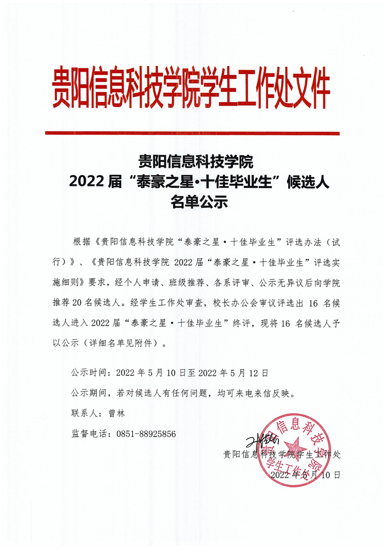 beat365在线唯一官网关于2022年贵州省普通高等学校三好学生、优秀学生干部、先进班集体评选推荐结果的公示