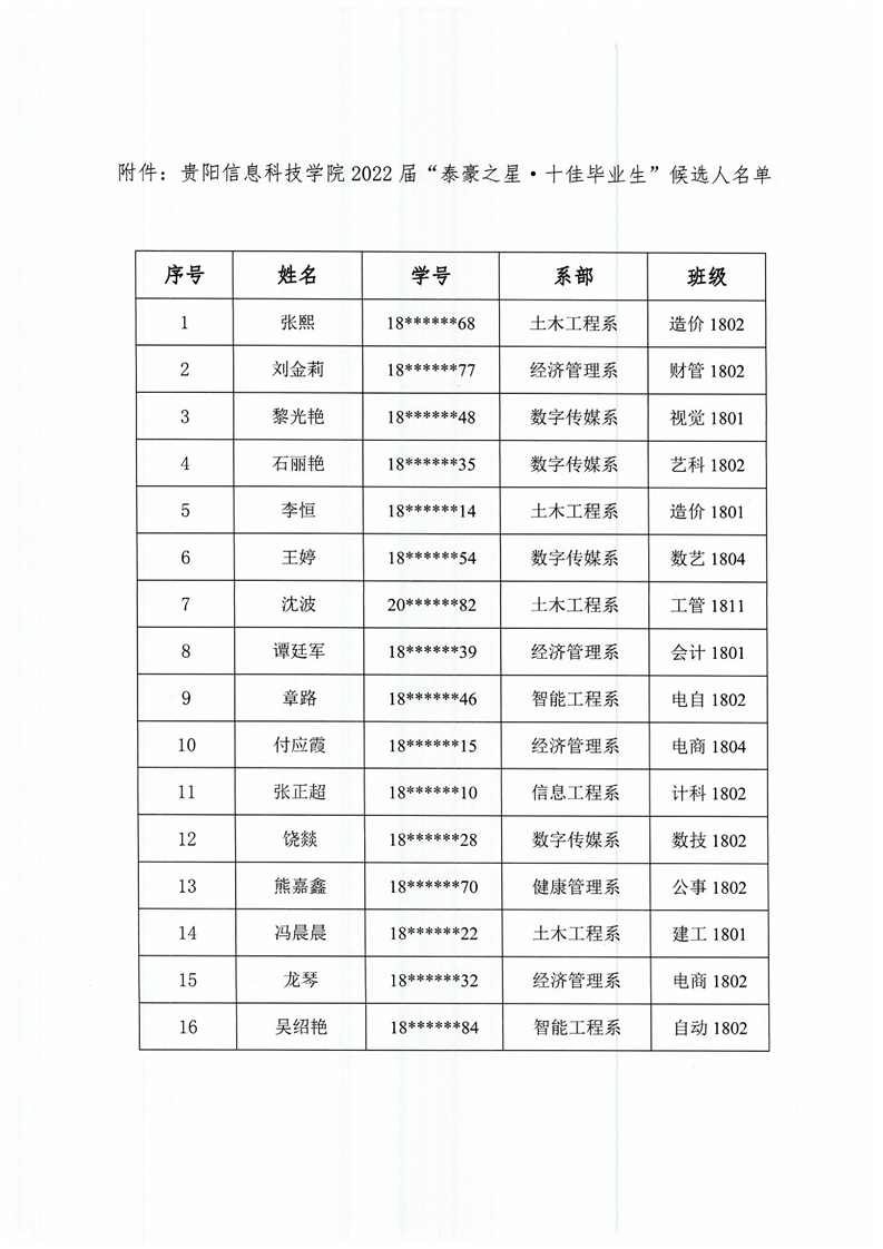 beat365在线唯一官网2022届“泰豪之星·十佳毕业生候选人公示