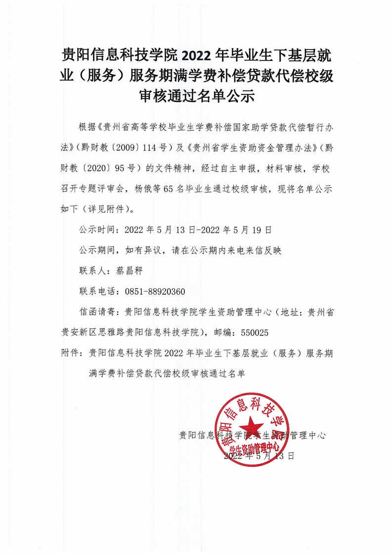 beat365在线唯一官网2022年毕业生下基层就业(服务)服务期满学费补偿贷款代偿校级审核通过名单公示