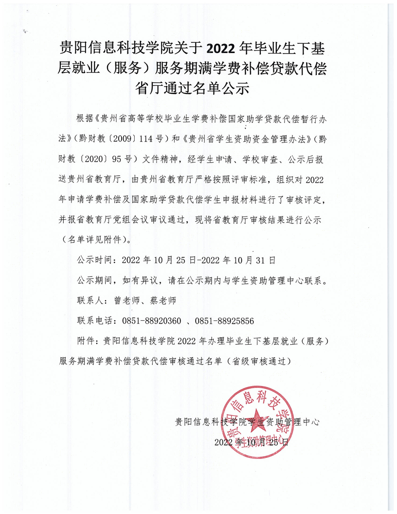 beat365在线唯一官网关于2022年毕业生下基层就业(服务)服务期满学费补偿贷款代偿省厅通过名单公示