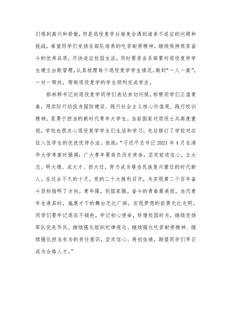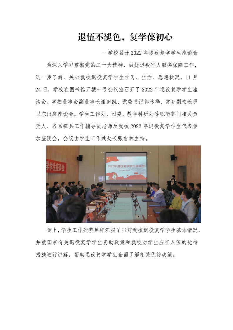 退伍不褪色,复学葆初心