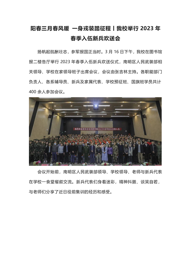 阳春三月春风暖 一身戎装踏征程|beat365举行2023年春季入伍新兵欢送会