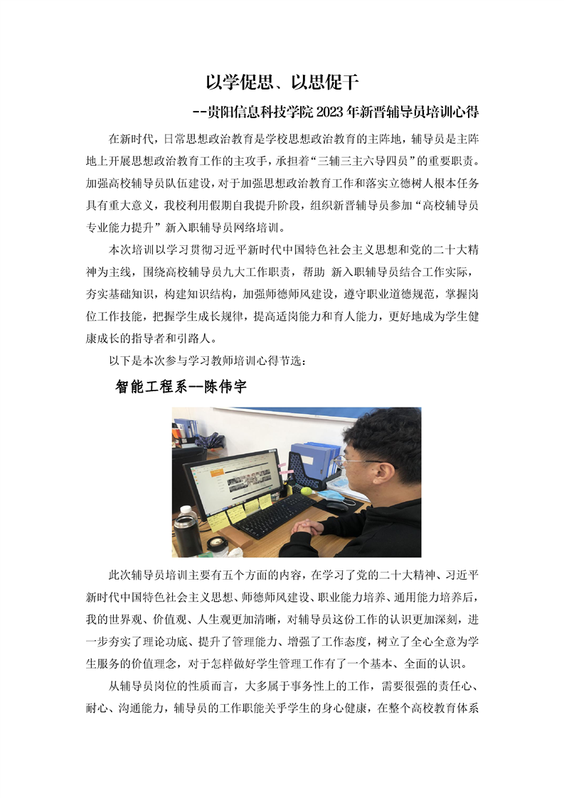 以学促思、以思促干|beat365在线唯一官网2023年新晋辅导员培训心得