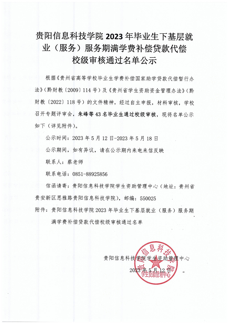 | beat365在线唯一官网2023年办理毕业生下基层就业(服务)服务期满 学费补偿贷款代偿校级审核通过名单 |