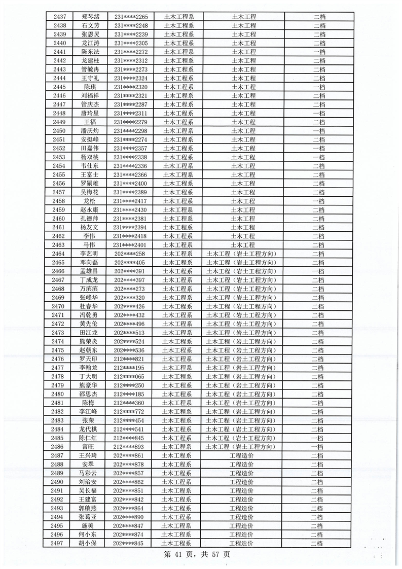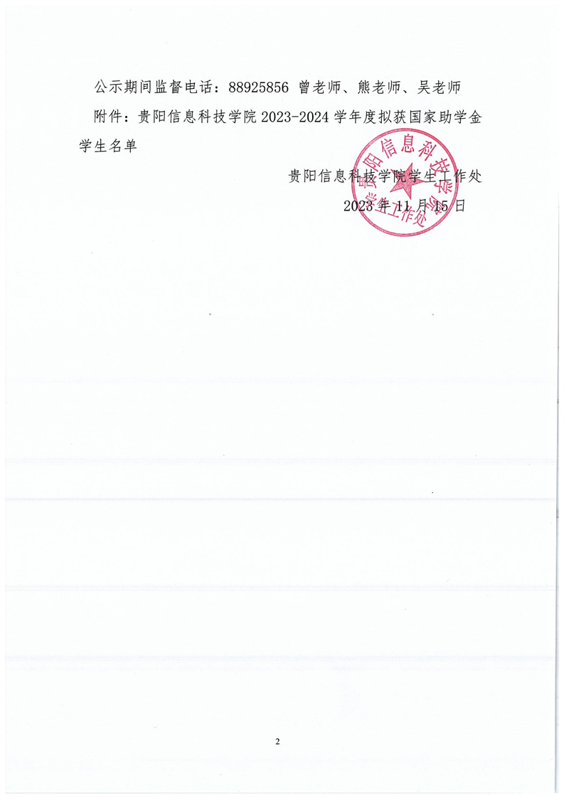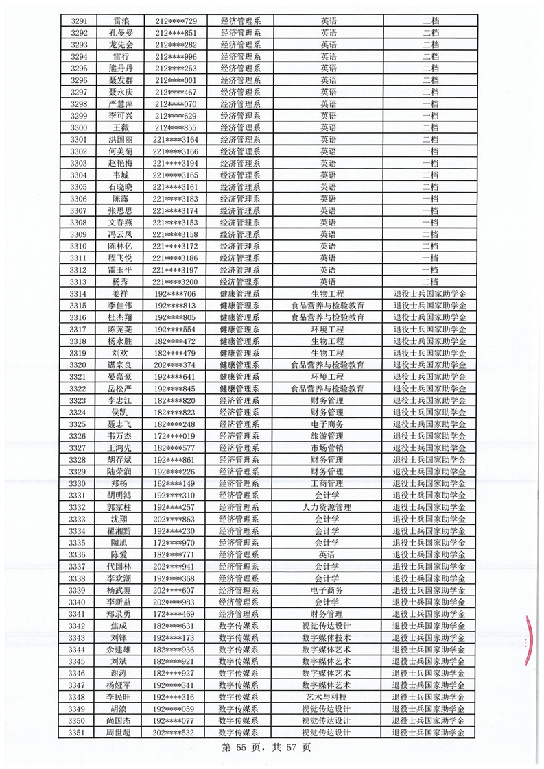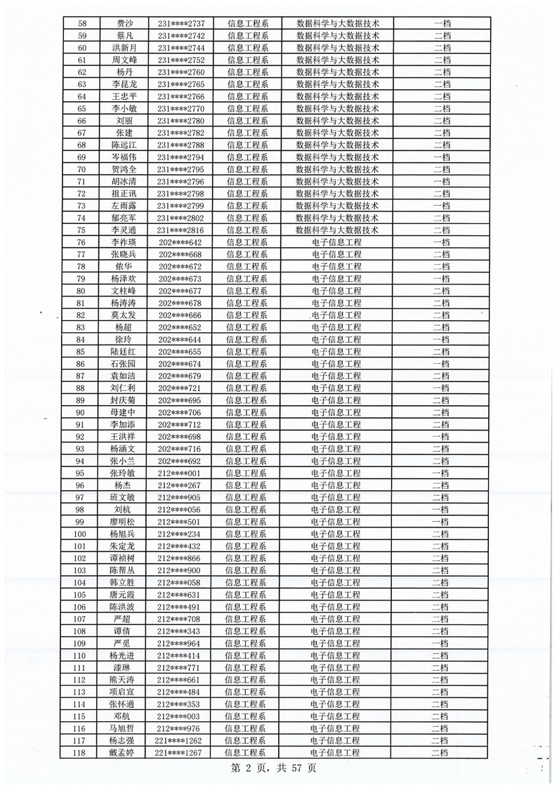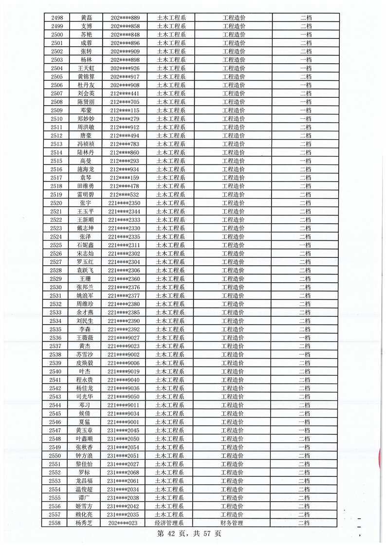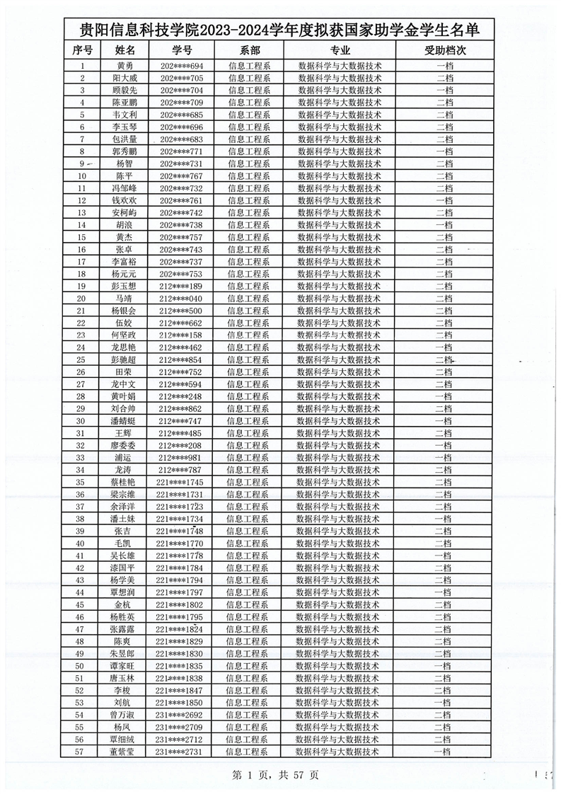 2023-2024学年拟获国家助学金学生名单公示