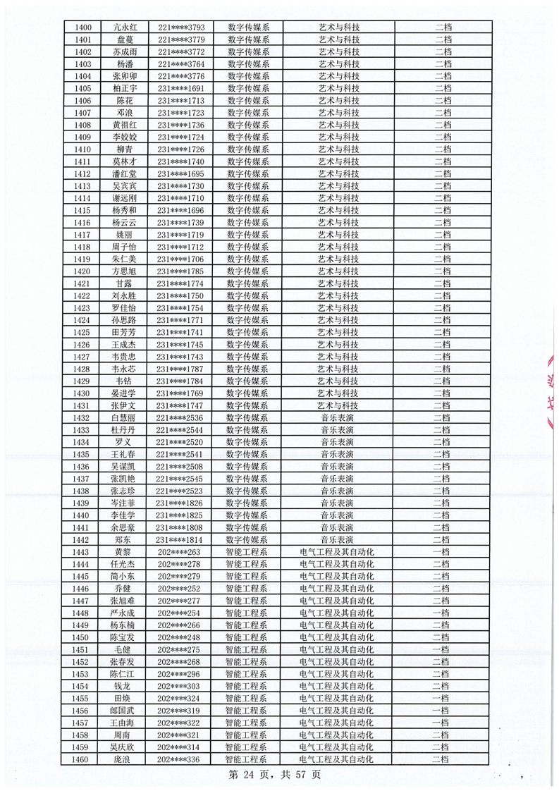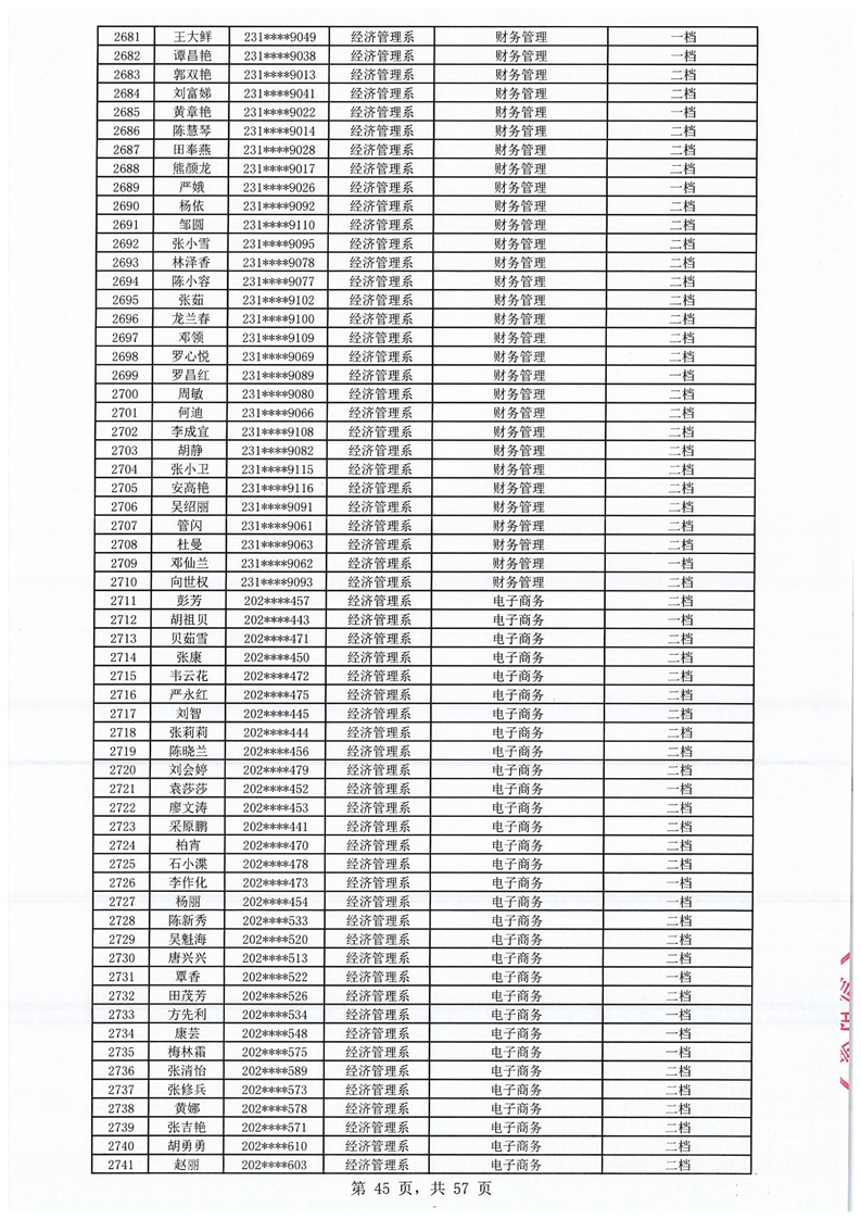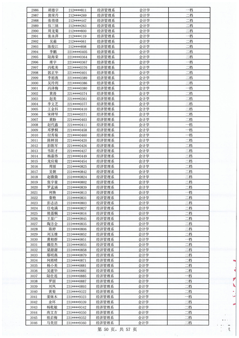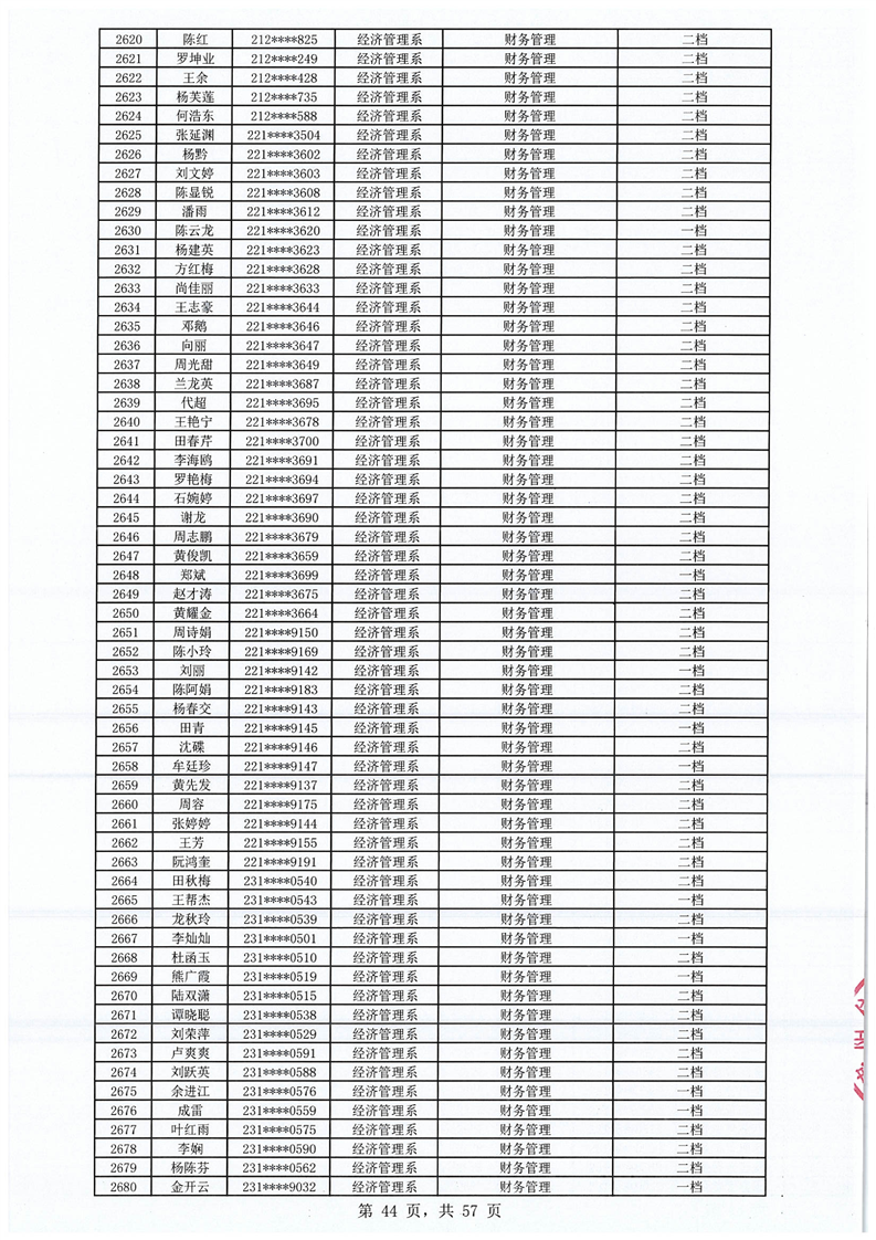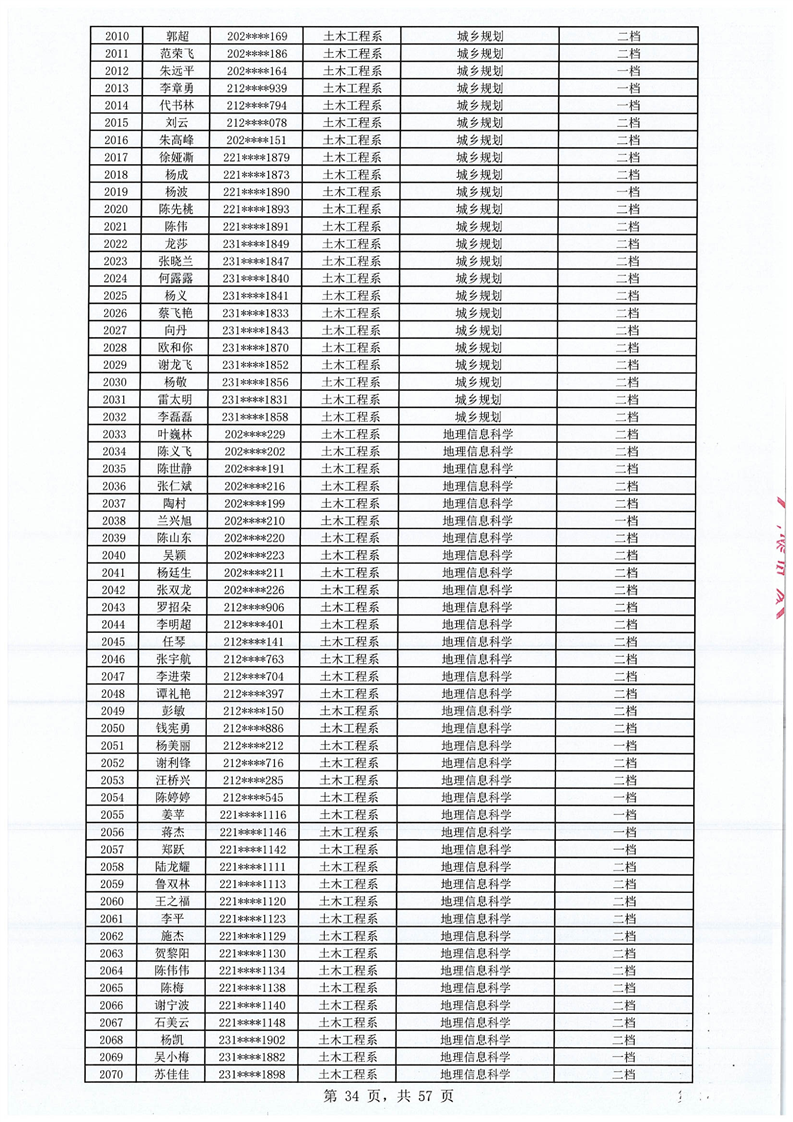 2023-2024学年拟获国家助学金学生名单公示