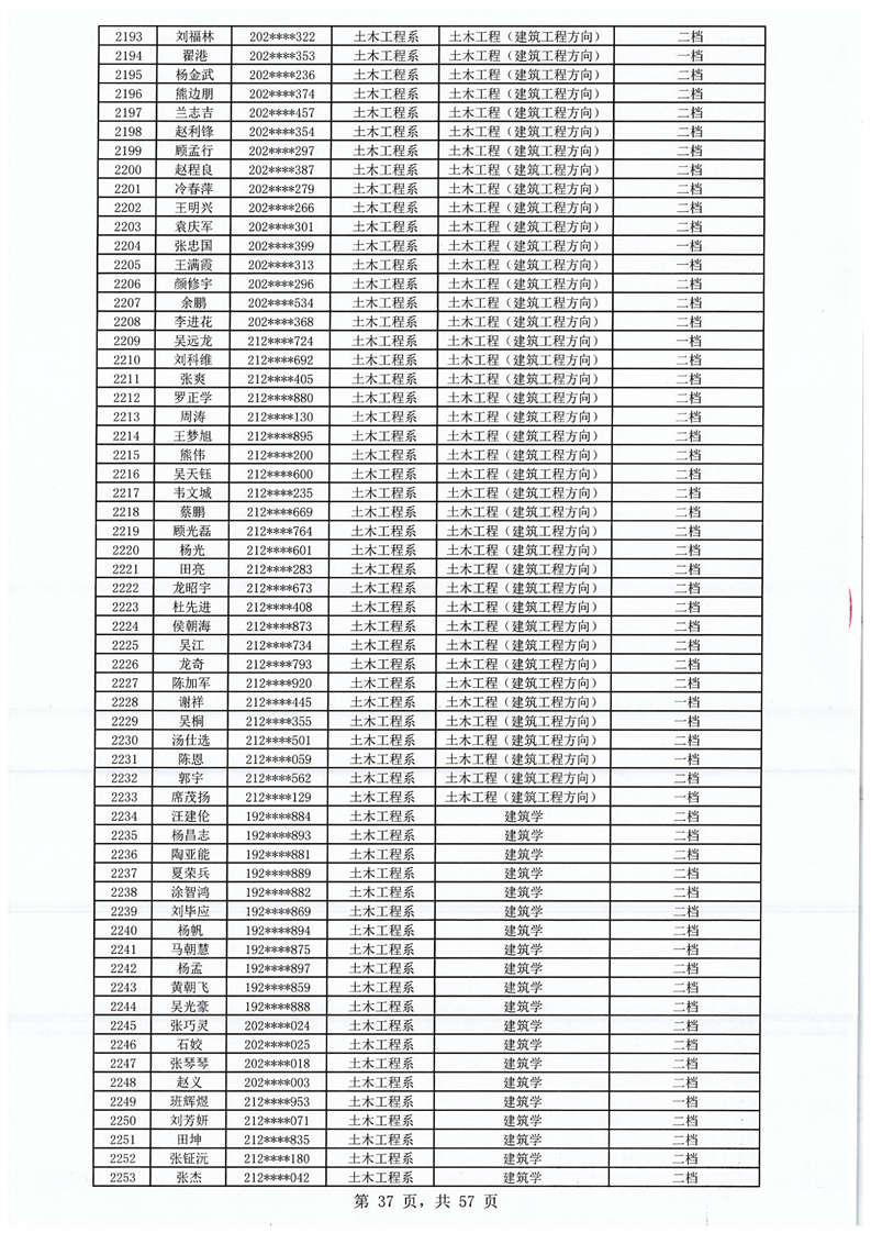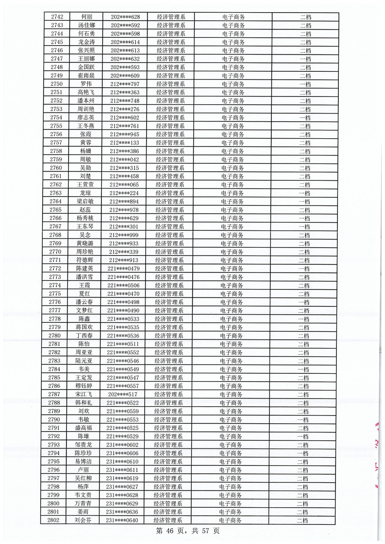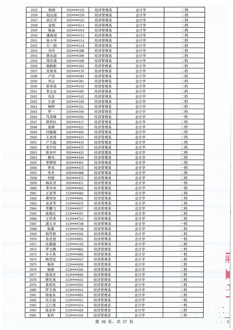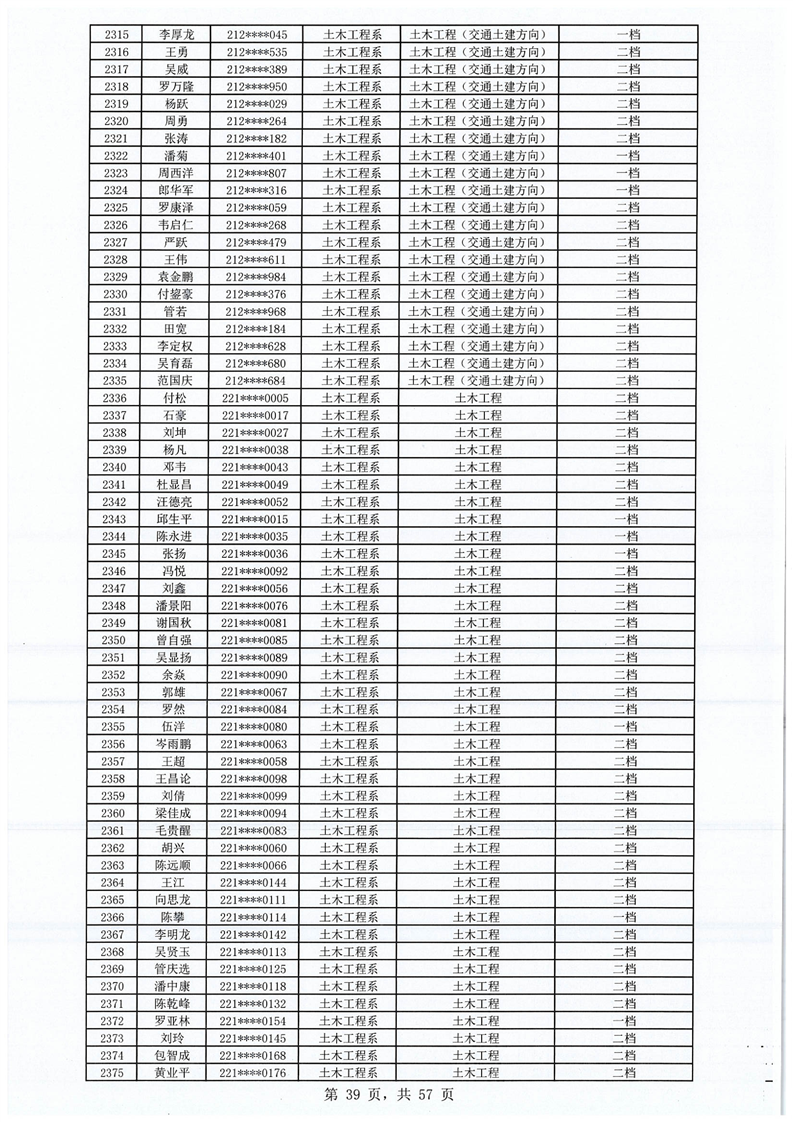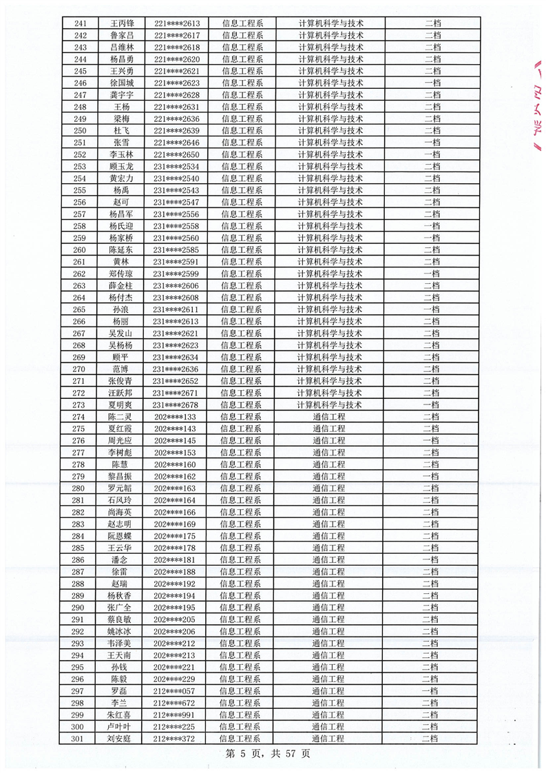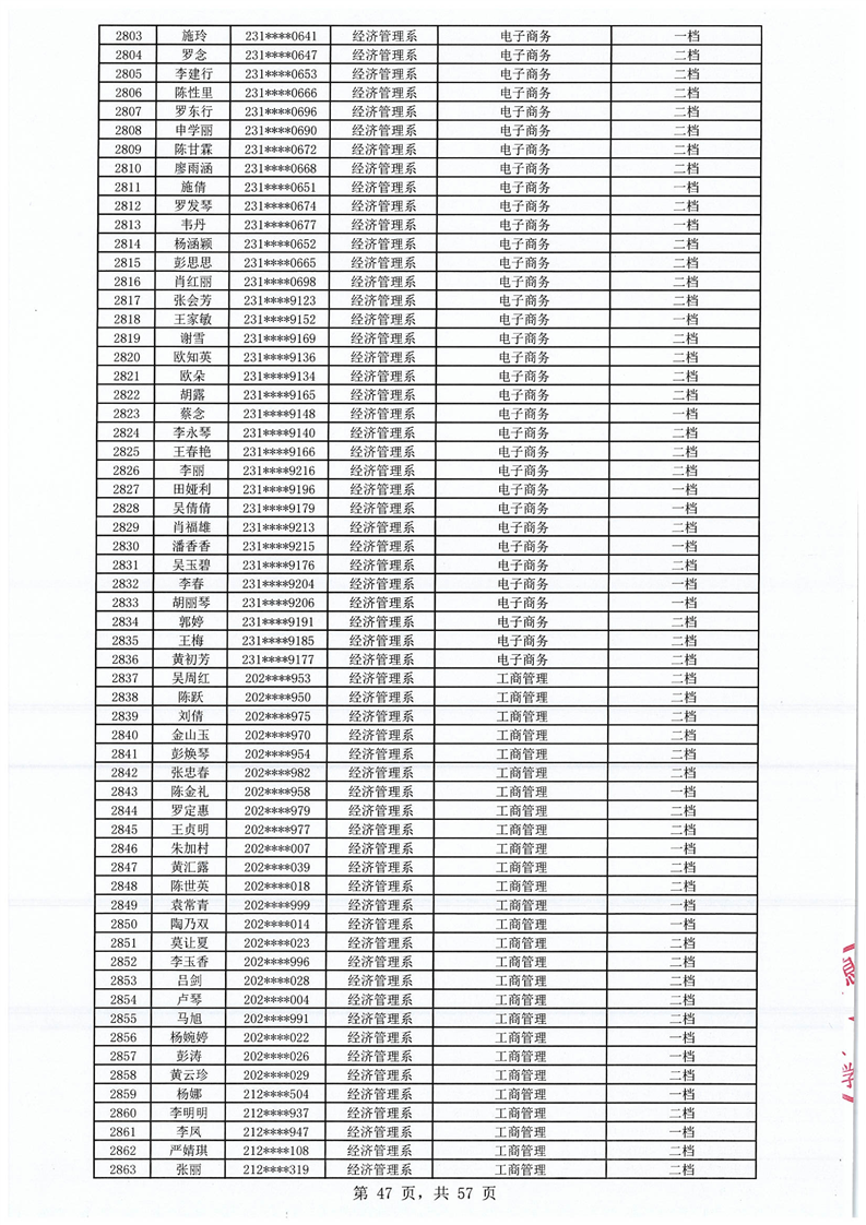 2023-2024学年拟获国家助学金学生名单公示
