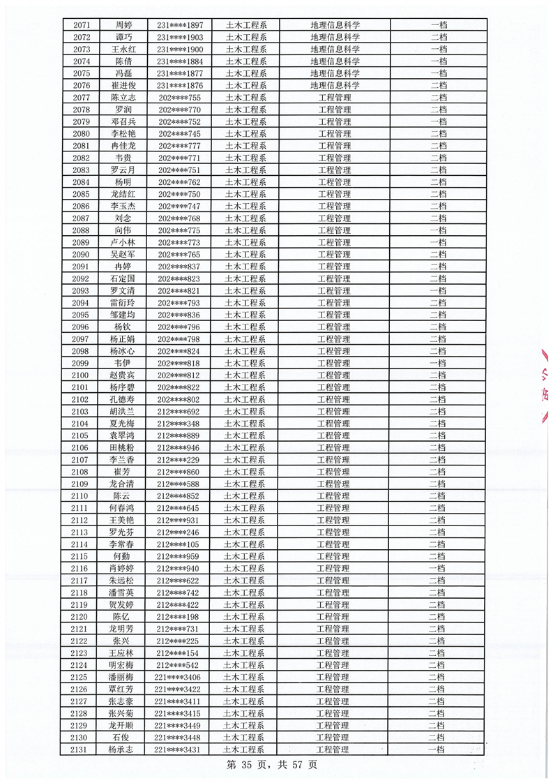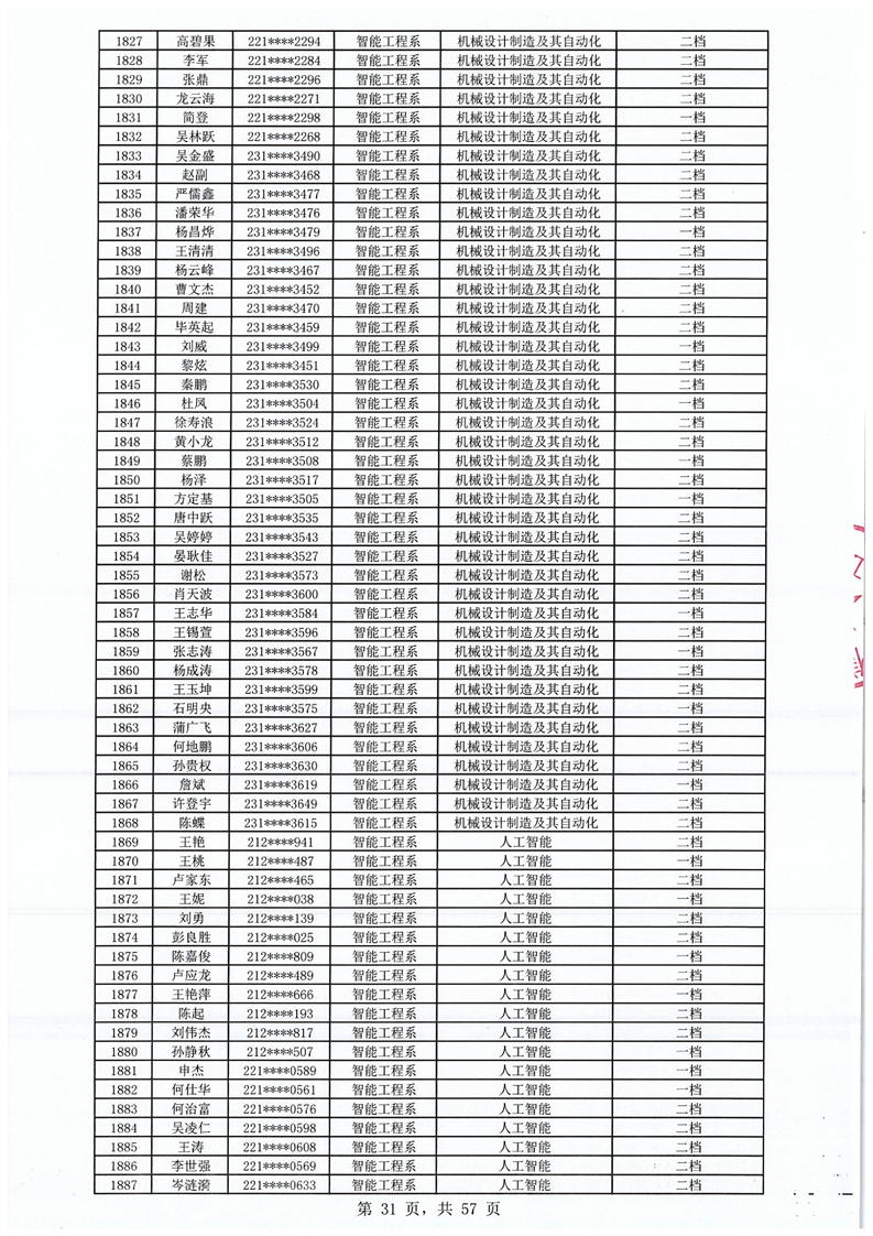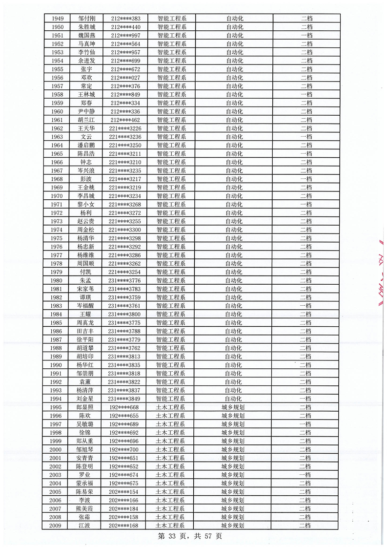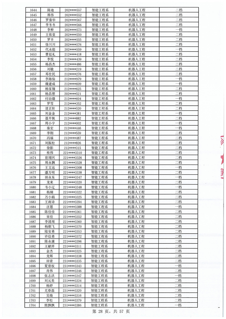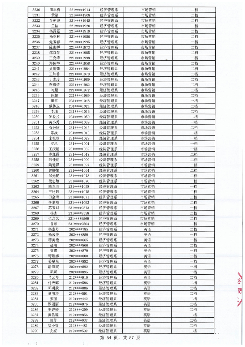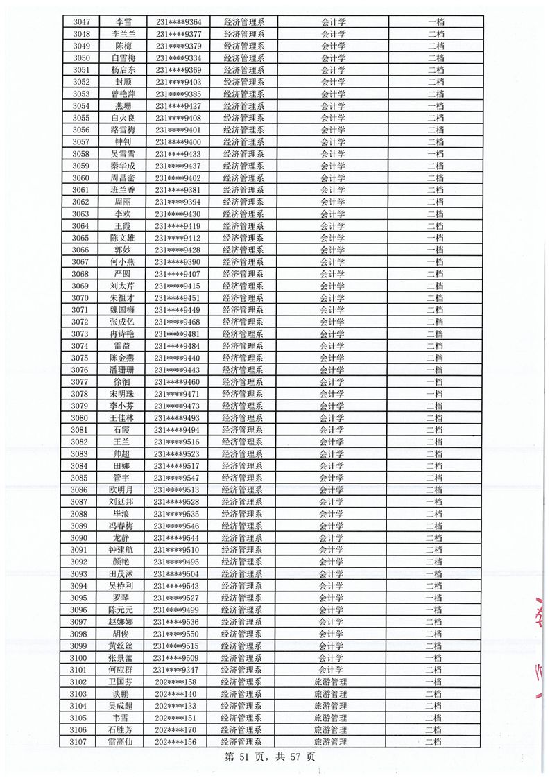 2023-2024学年拟获国家助学金学生名单公示