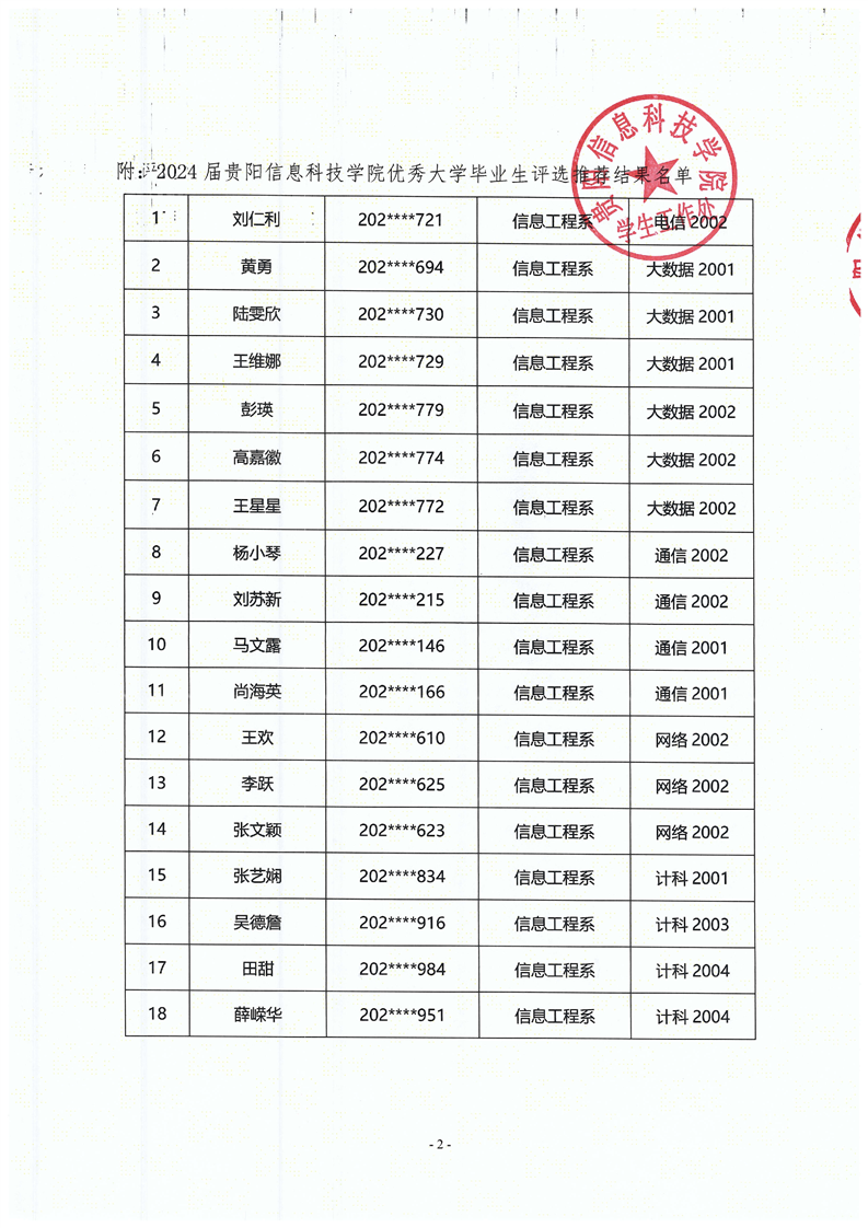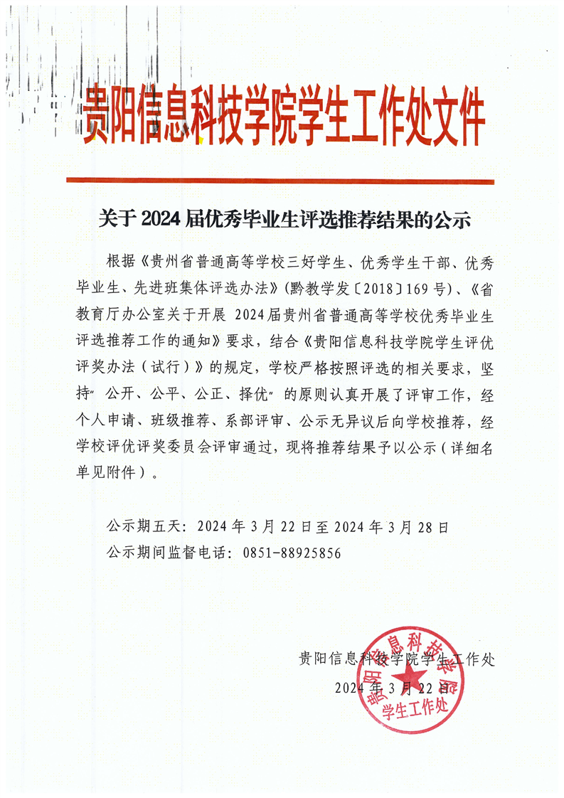 关于2024届优秀毕业生评选推荐结果的公示