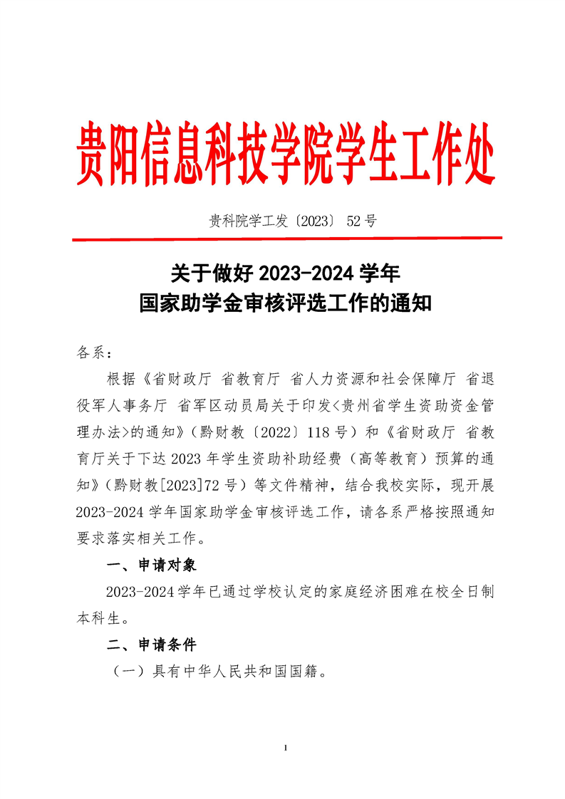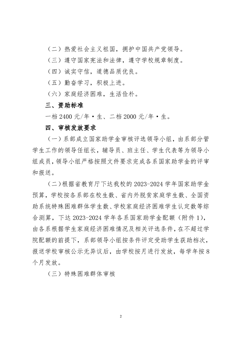 关于做好2023-2024学年国家助学金审核评选工作的通知