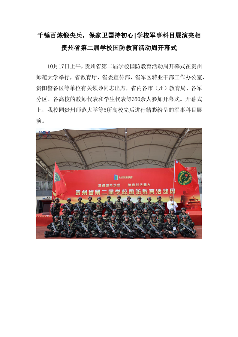 千锤百炼锻尖兵,保家卫国持初心|学校军事科目展演亮相 贵州省第二届学校国防教育活动周开幕式