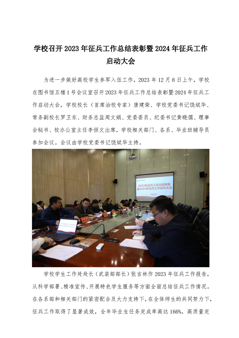 学校召开2023年征兵工作总结表彰暨2024年征兵工作启动大会