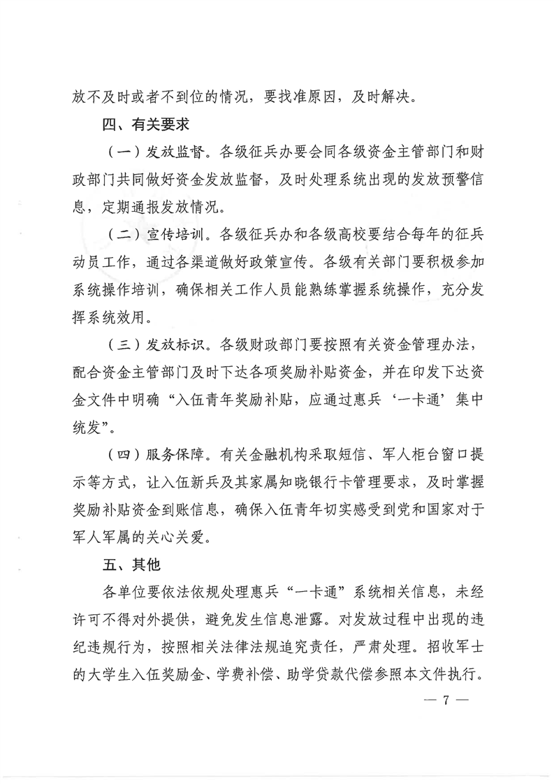 关于全省义务兵各类优待金实行惠兵一卡通集中统发的通知