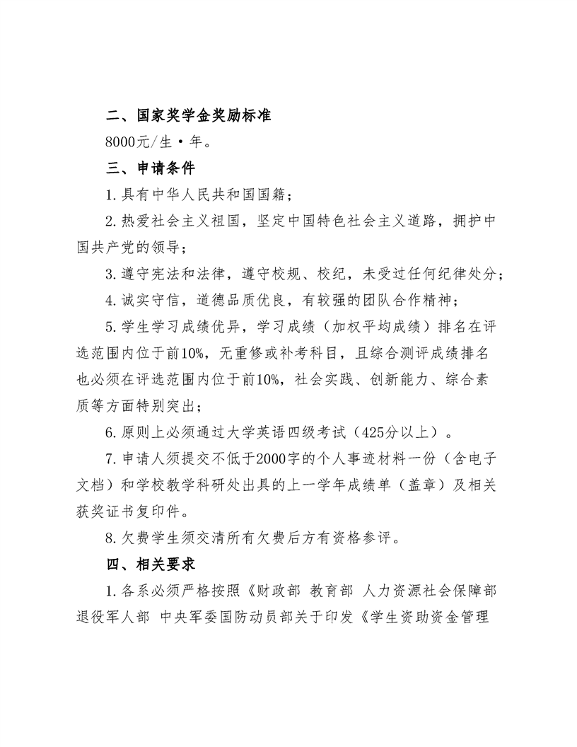关于做好2021-2022学年度国家奖学金评选推荐工作的通知