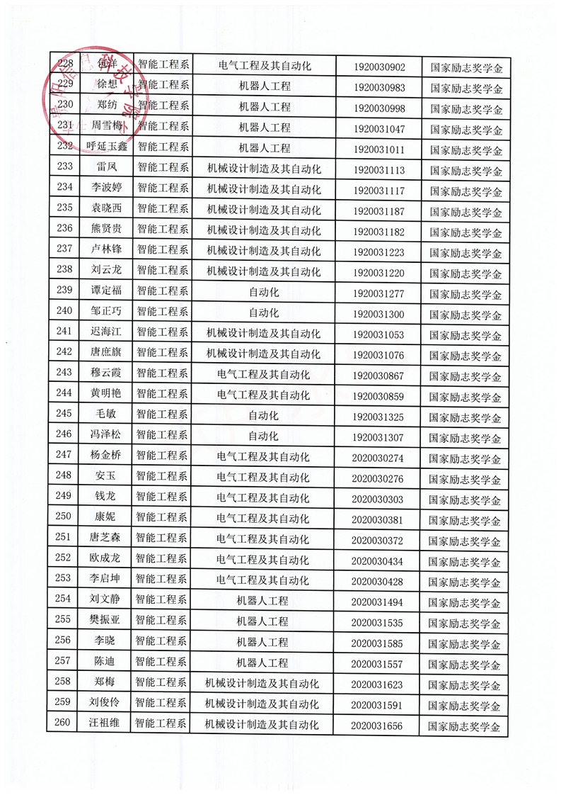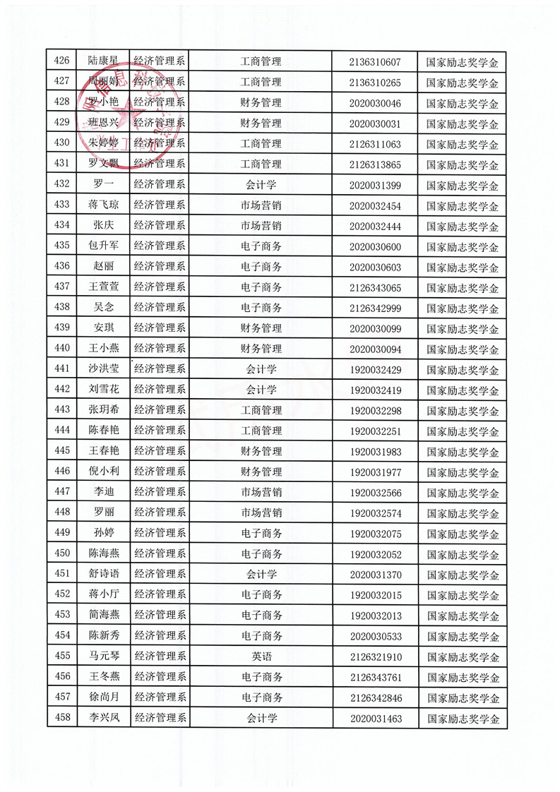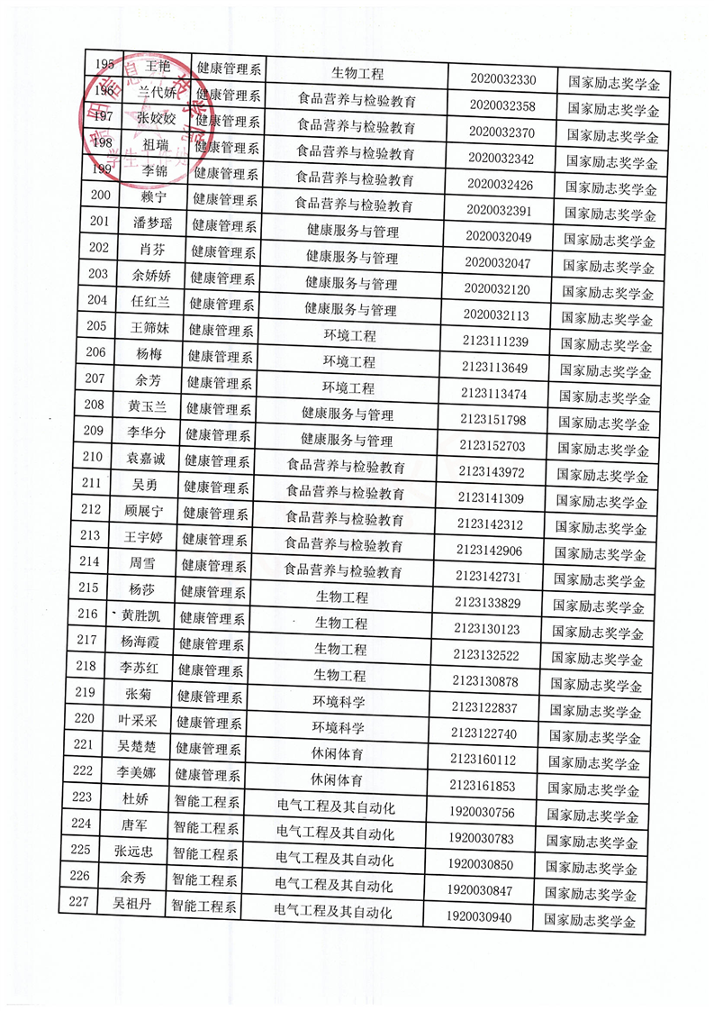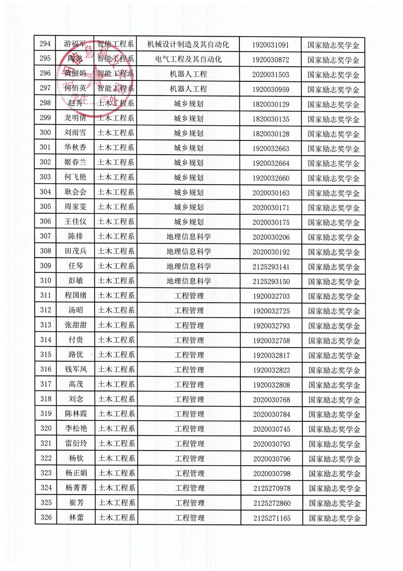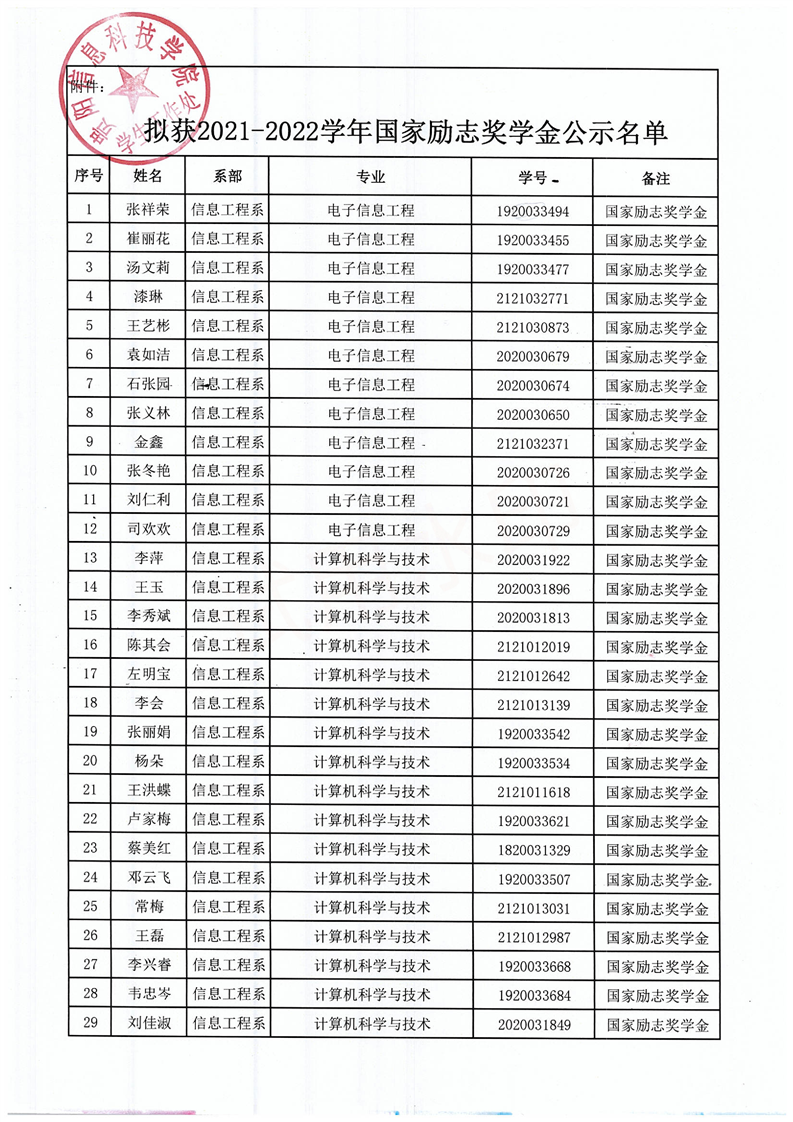 关于拟获2021-2022学年国家励志奖学金的学生名单公示