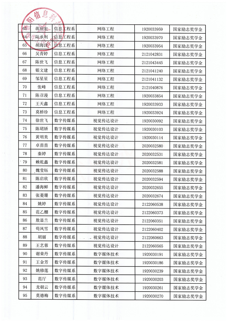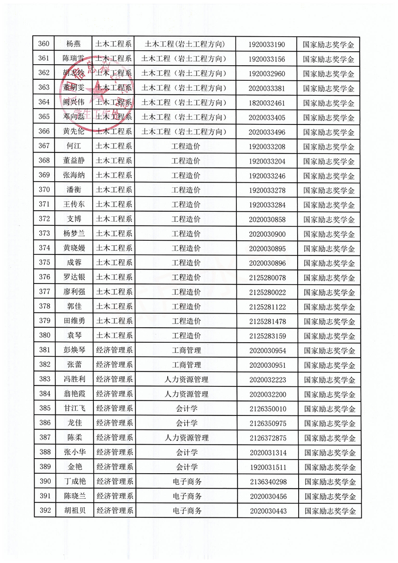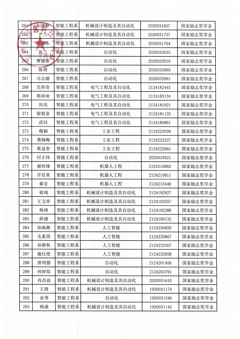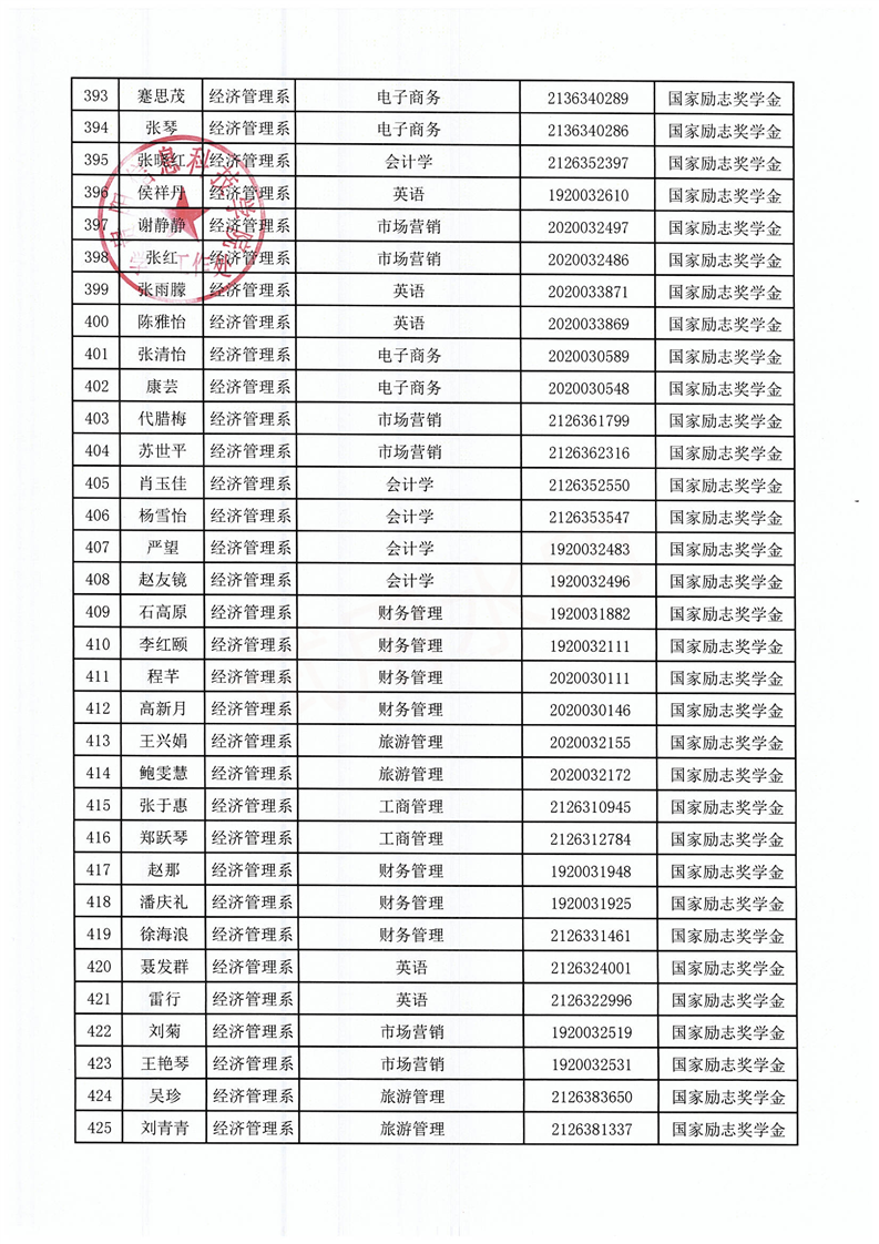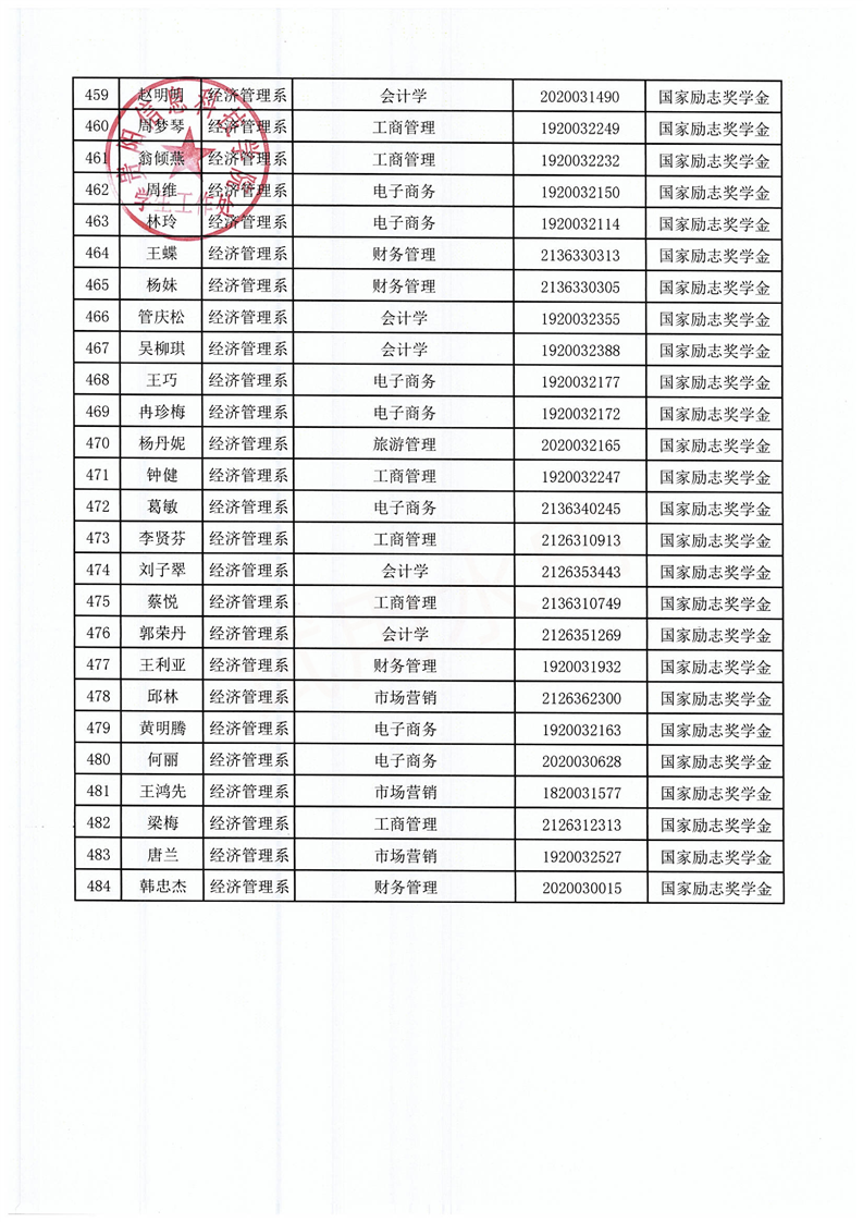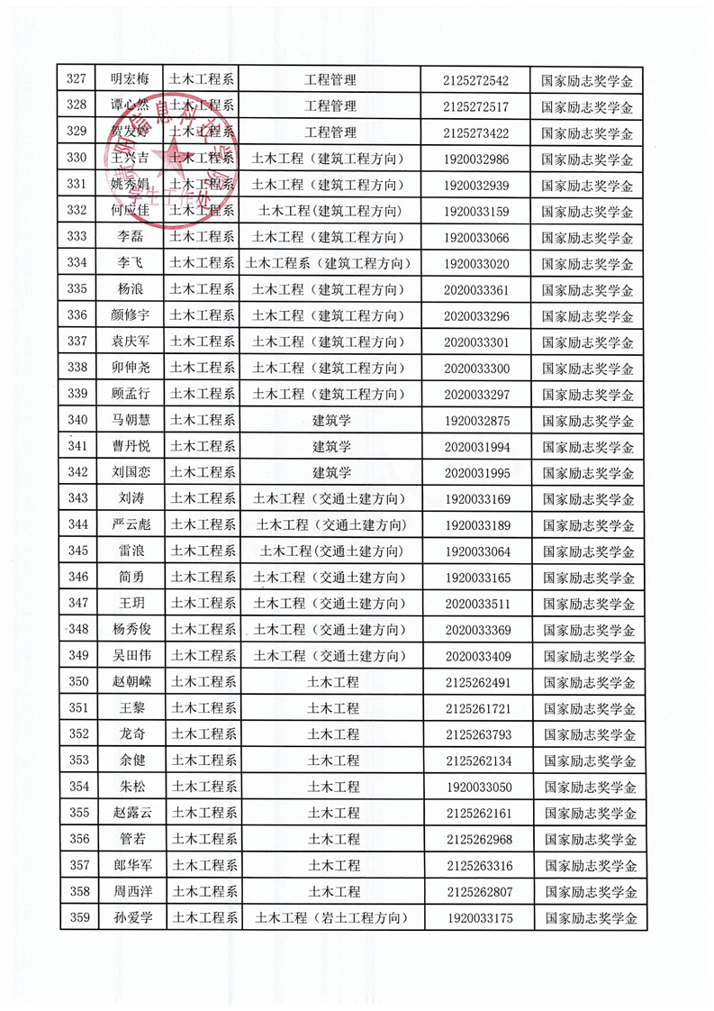 关于拟获2021-2022学年国家励志奖学金的学生名单公示