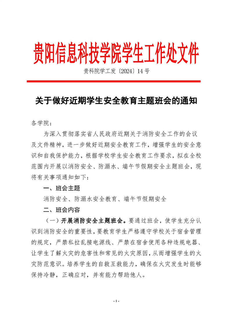 关于做好2024年五一假期学生安全教育工作的通知