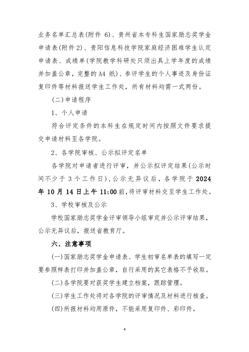 贵科院学工发〔2024〕36号 关于做好2023-2024学年度国家励志奖学金评选推荐工作的通知
