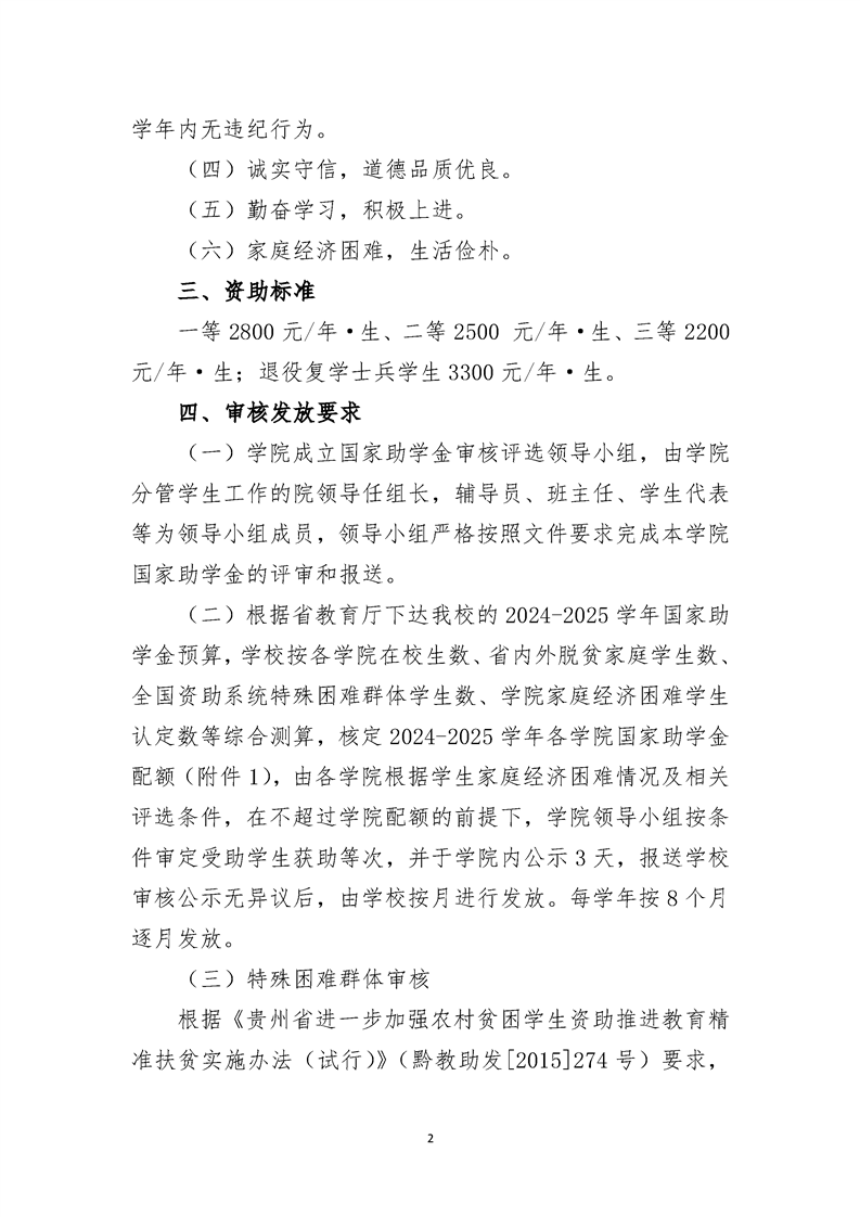 【贵科院学工发〔2024〕37号】关于做好2024-2025学年国家助学金评审工作的通知