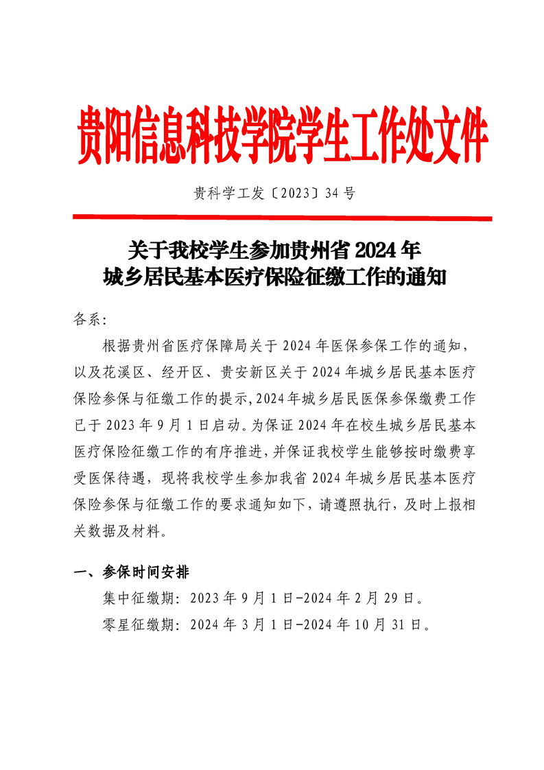 关于beat365学生参加贵州省2024年城乡居民基本医疗保险征缴工作的通知