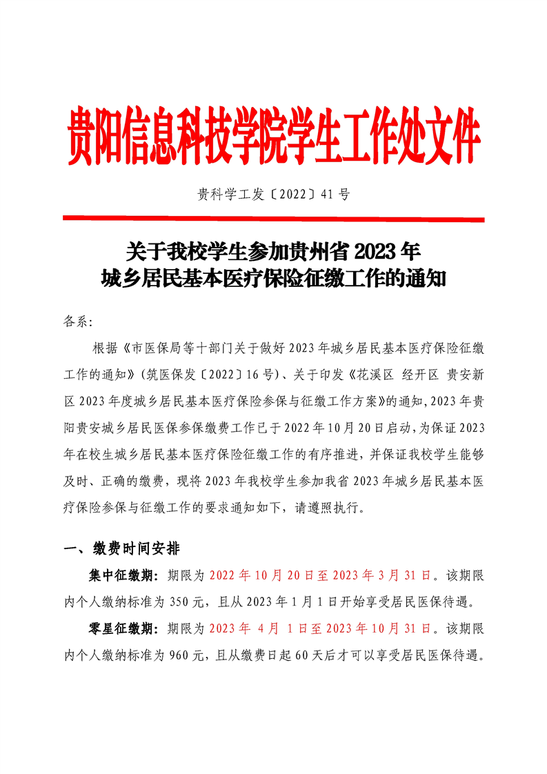关于beat365学生参加贵州省2023年城乡居民基本医疗保险征缴工作的通知