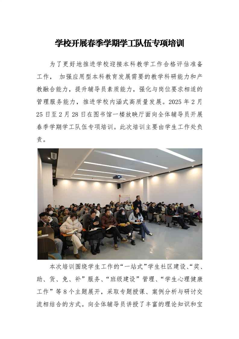 学校开展春季学期学工队伍专项培训