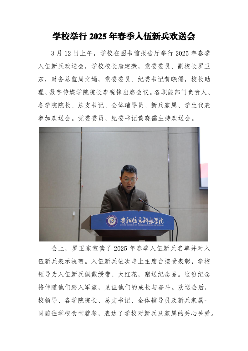 学校举行2025年春季入伍新兵欢送会