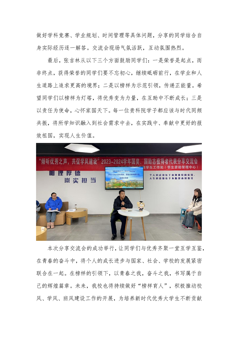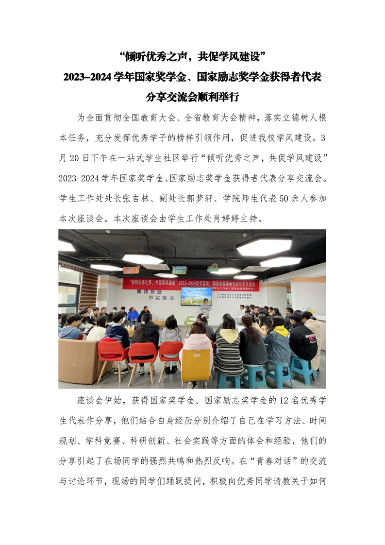 “倾听优秀之声,共促学风建设” 2023-2024学年国家奖学金、国家励志奖学金获得者代表分享交流会顺利举行