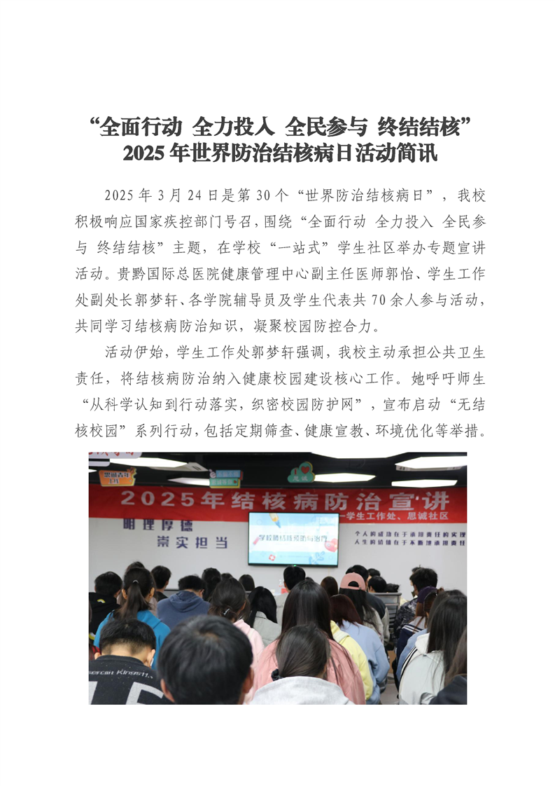 “全面行动 全力投入 全民参与 终结结核” 2025年世界防治结核病日活动简讯