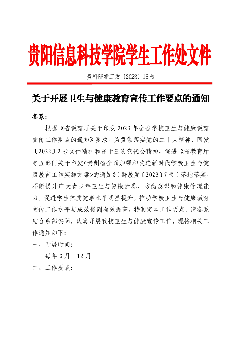 关于开展卫生与健康教育宣传工作要点的通知