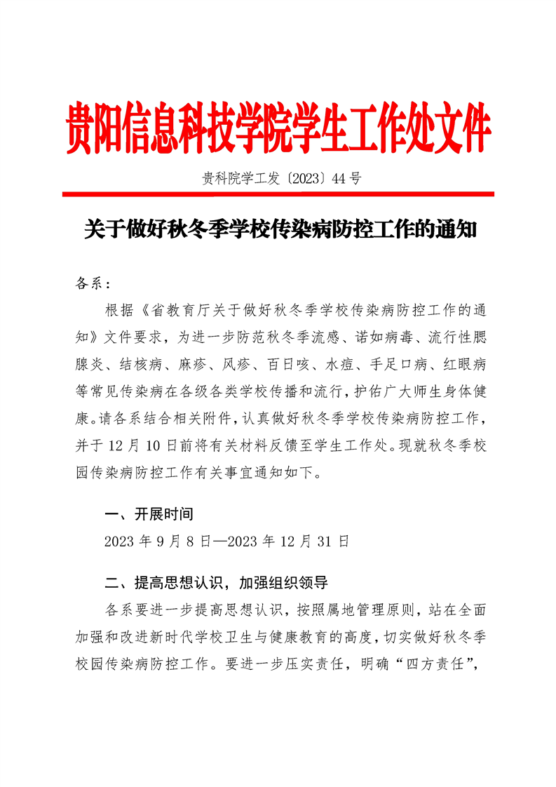 关于做好秋冬季学校传染病防控工作的通知