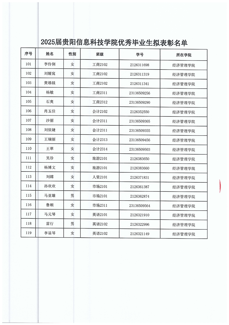 2025届beat365在线唯一官网优秀毕业生表彰的119名学生公示