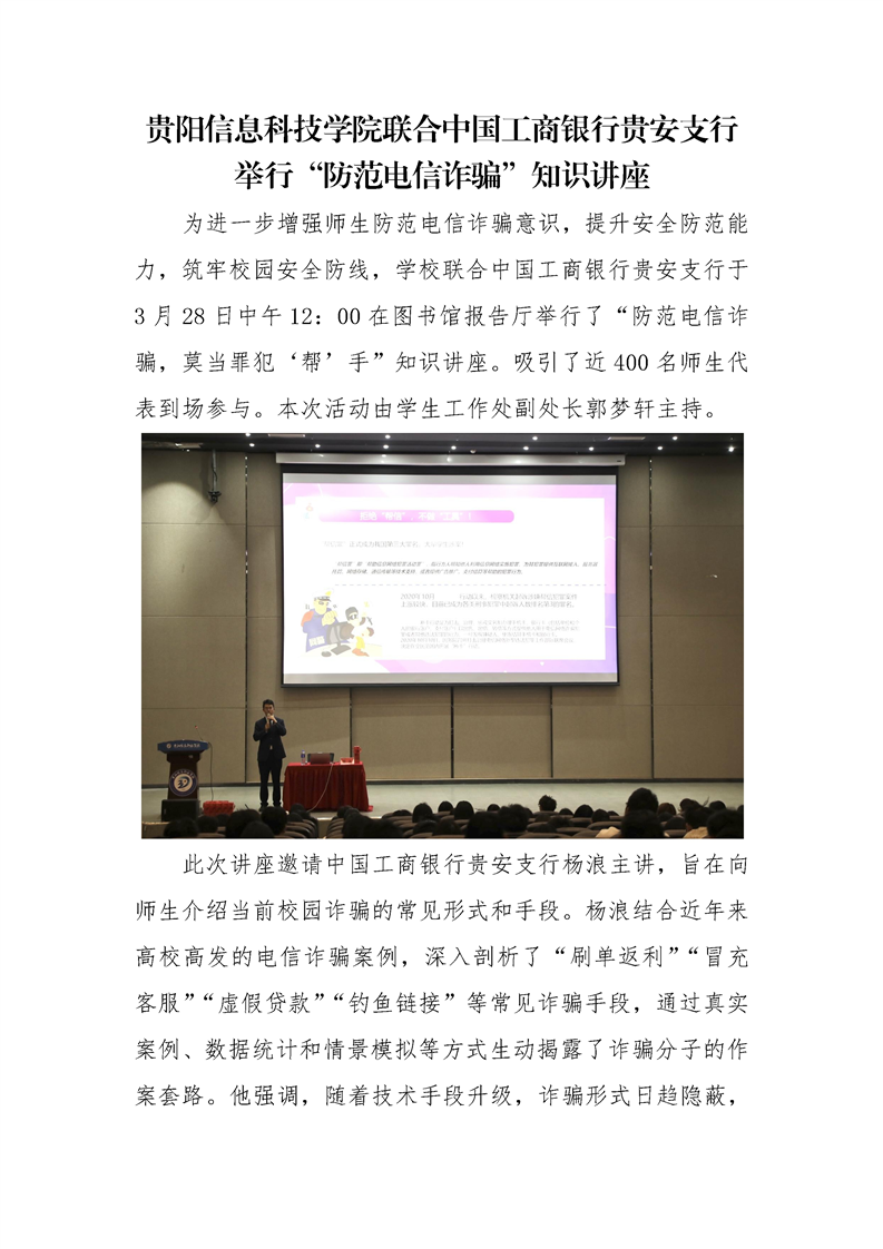 beat365在线唯一官网联合中国工商银行贵安支行举行“防范电信诈骗”知识讲座