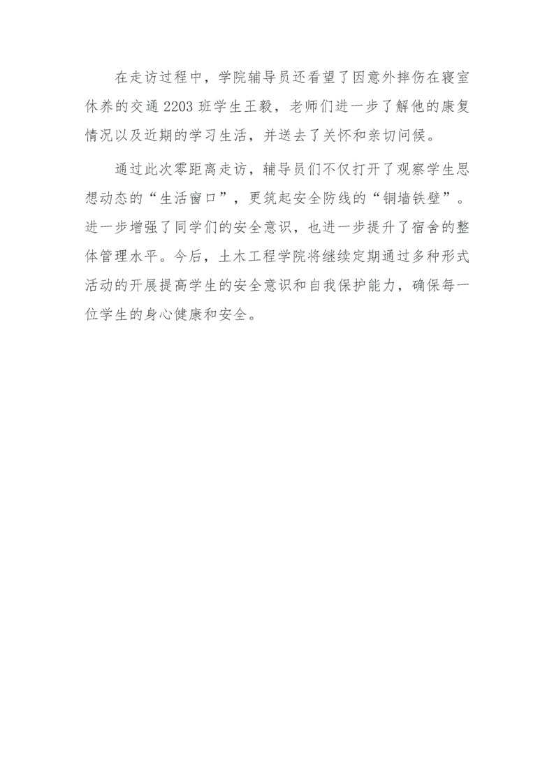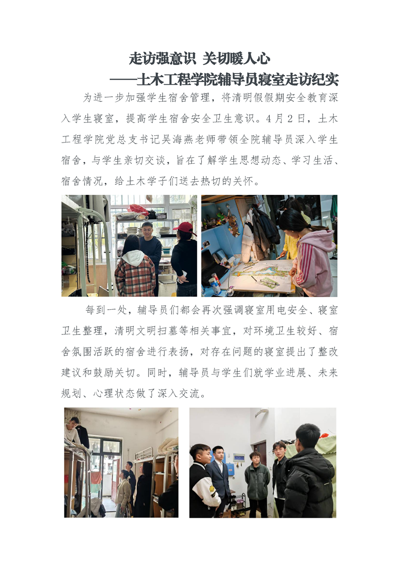 走访强意识 关切暖人心 ——土木工程学院辅导员寝室走访纪实