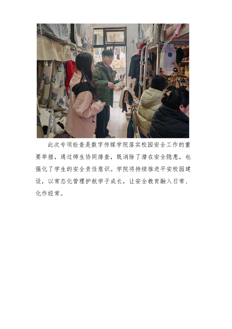 安全+温暖双护航——数字传媒学院开展春季宿舍安全隐患排查工作