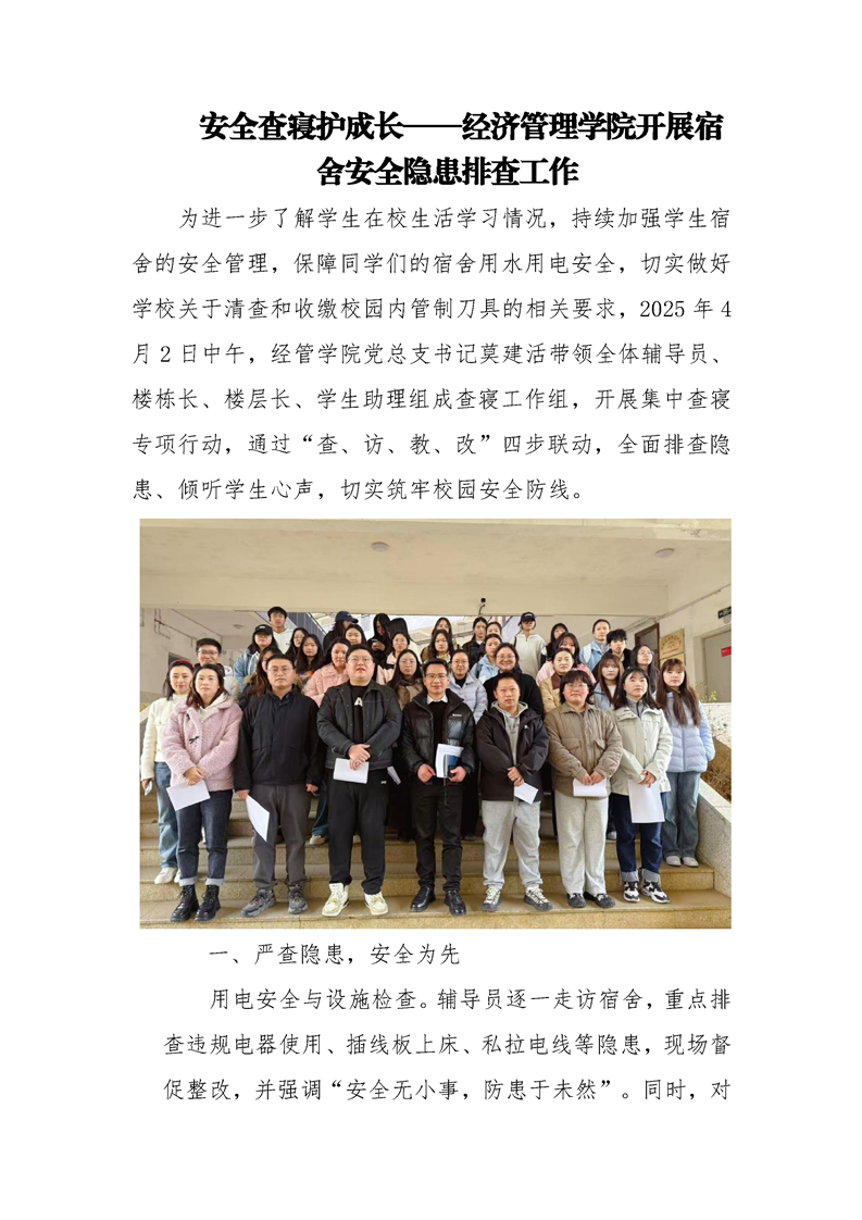 安全查寝护成长——经济管理学院开展宿舍安全隐患排查工作