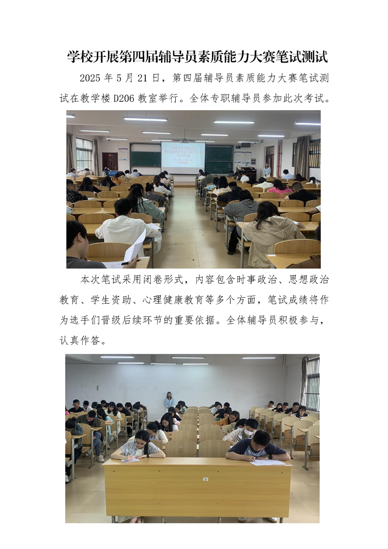 学校开展第四届辅导员素质能力大赛笔试测试