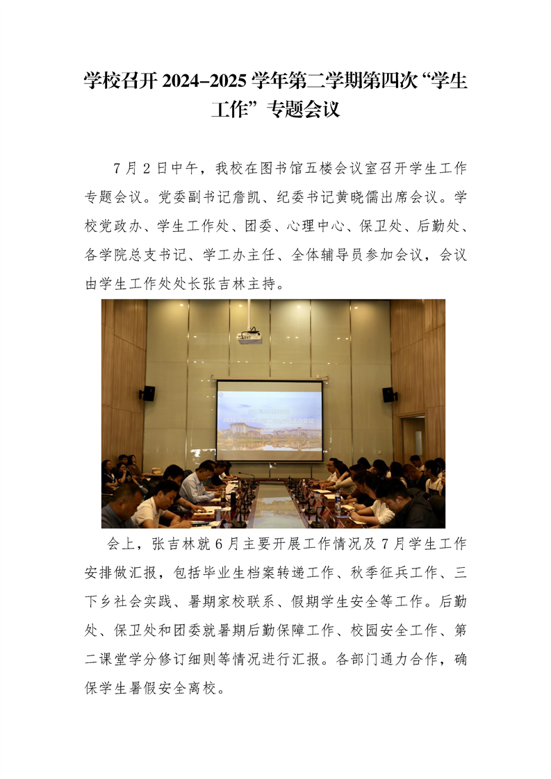 学校召开2024-2025学年第二学期第四次“学生工作”专题会议