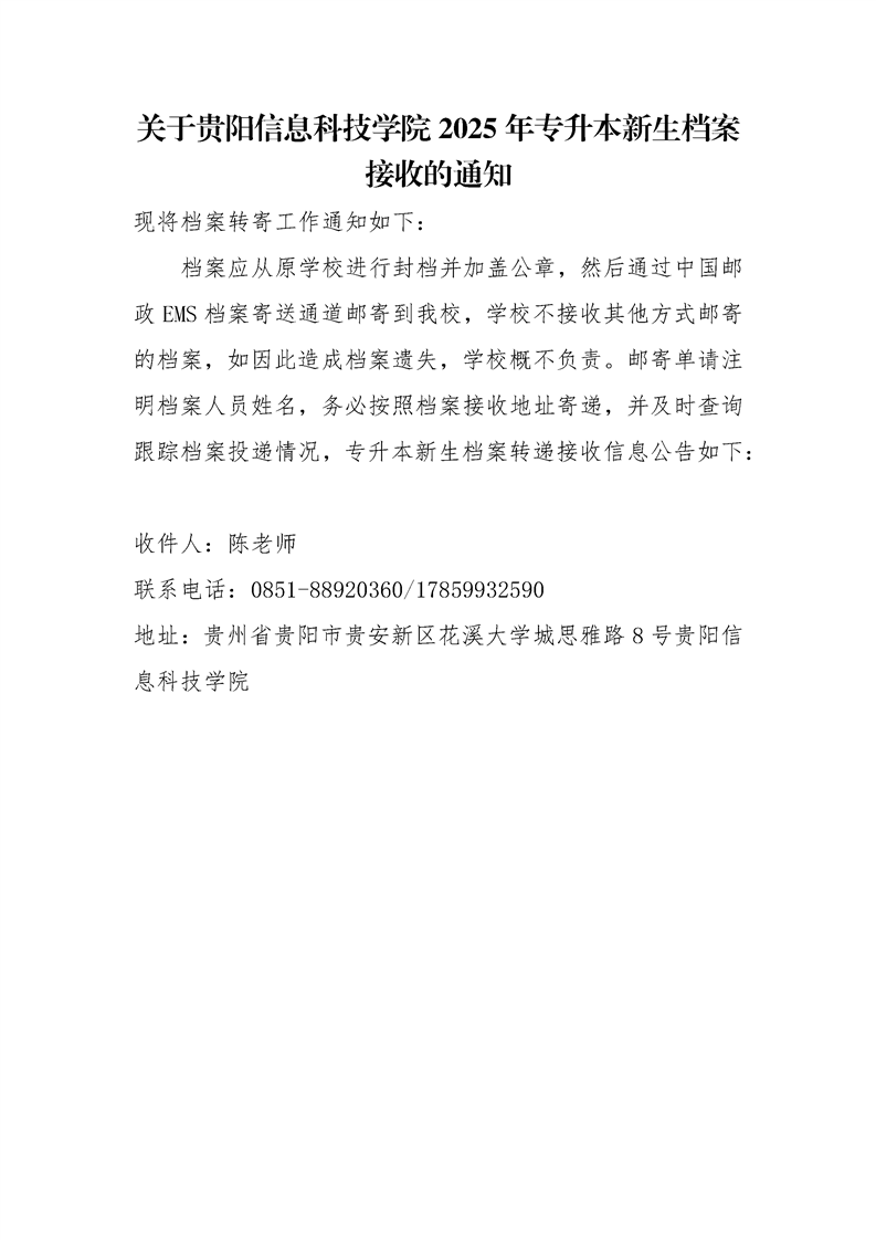 关于beat365在线唯一官网2025年专升本新生档案接收的通知